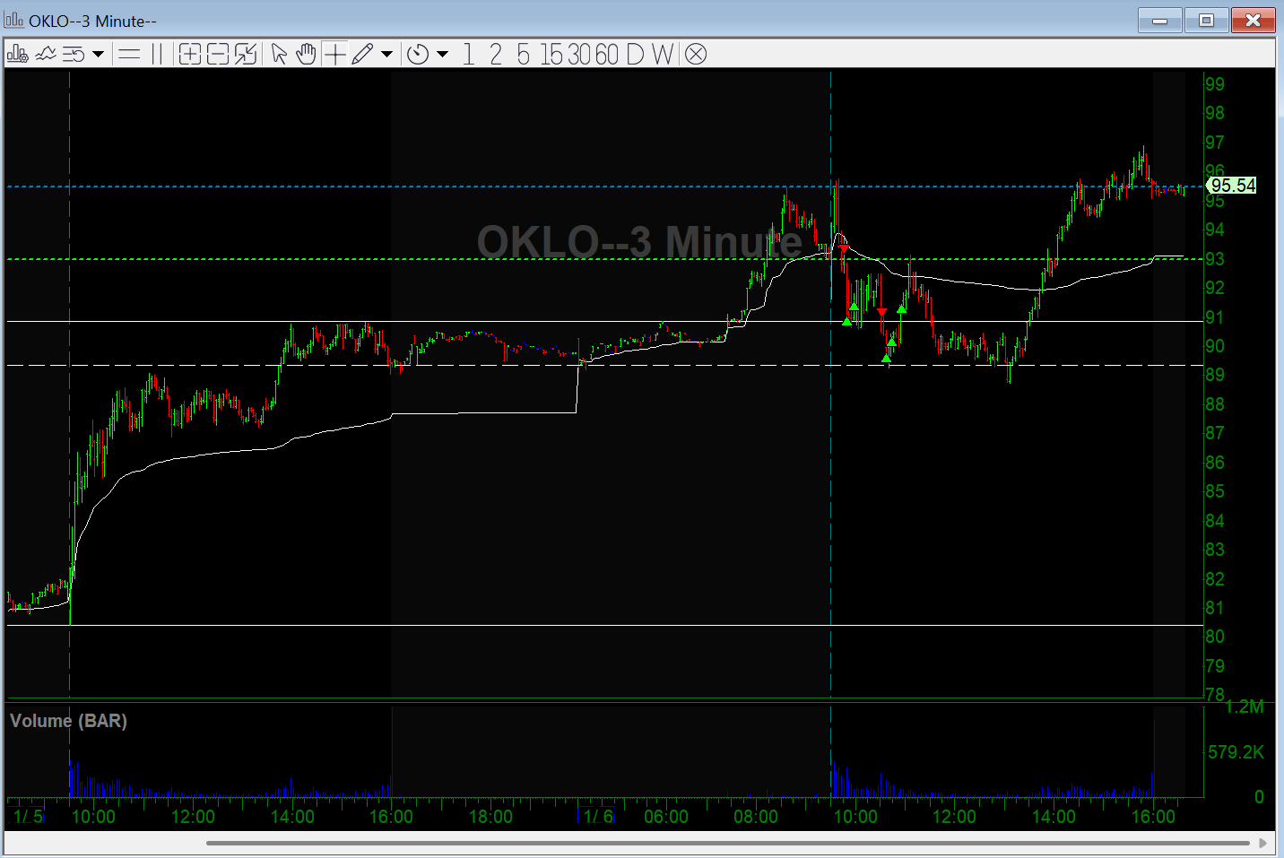 I got long on the break of 96, looking for continuation. It had a sharp move up to 100 and then failed back under 94, and I got stopped out. Right after that, it flushed to a new lod, based, reclaimed the lows, and started grinding higher.