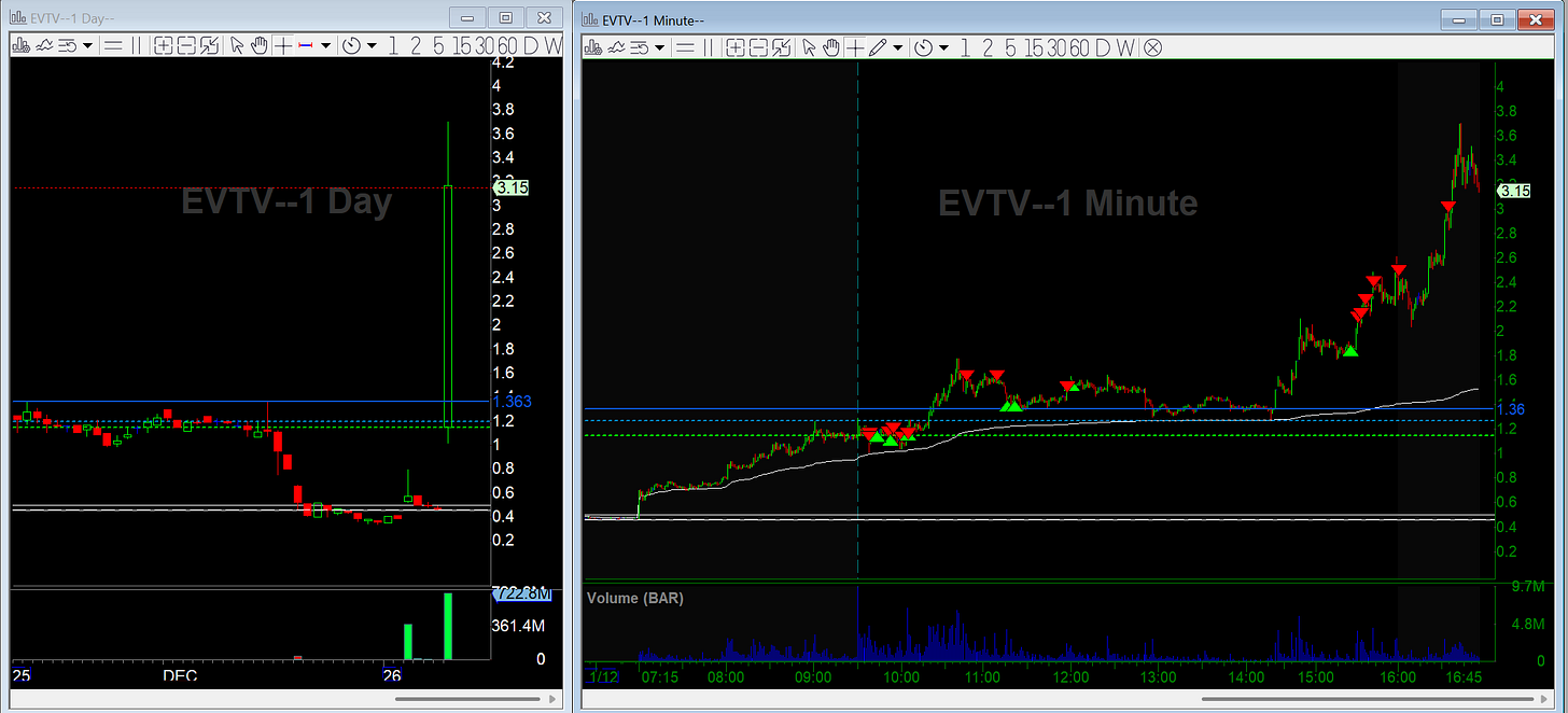 Later in the day EVTV kept reclaiming levels, trapping shorts, and squeezing higher. It was doing huge volume, over 1/2 billion shares! In the afternoon it pulled back to the daily 200 SMA and held, lining up with the prior HOD (nice confluence!). I got long with tight risk. I sold partials into new highs, then scaled out into the close. I held a small piece into after hours and sold it at $3!