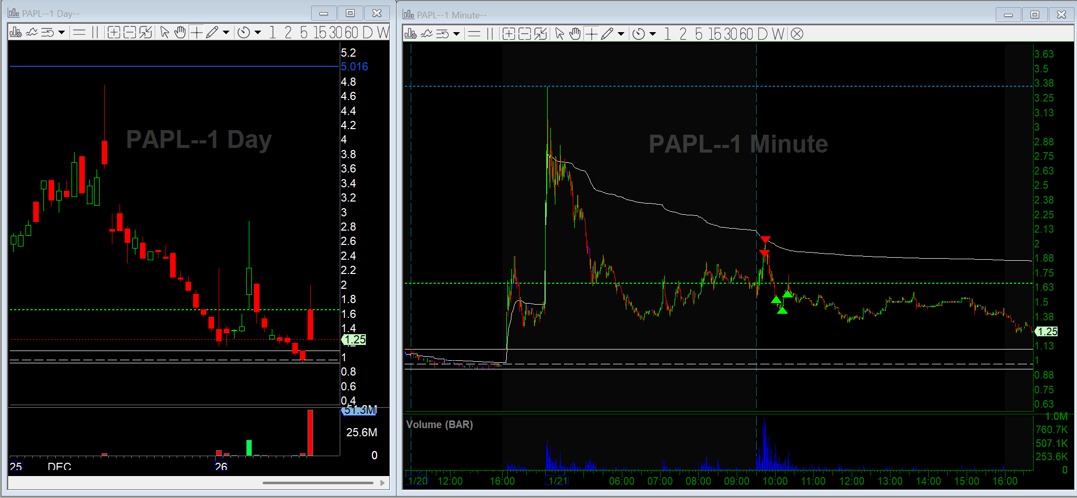 Active morning with multiple small-cap gappers; easiest win came from PAPL.