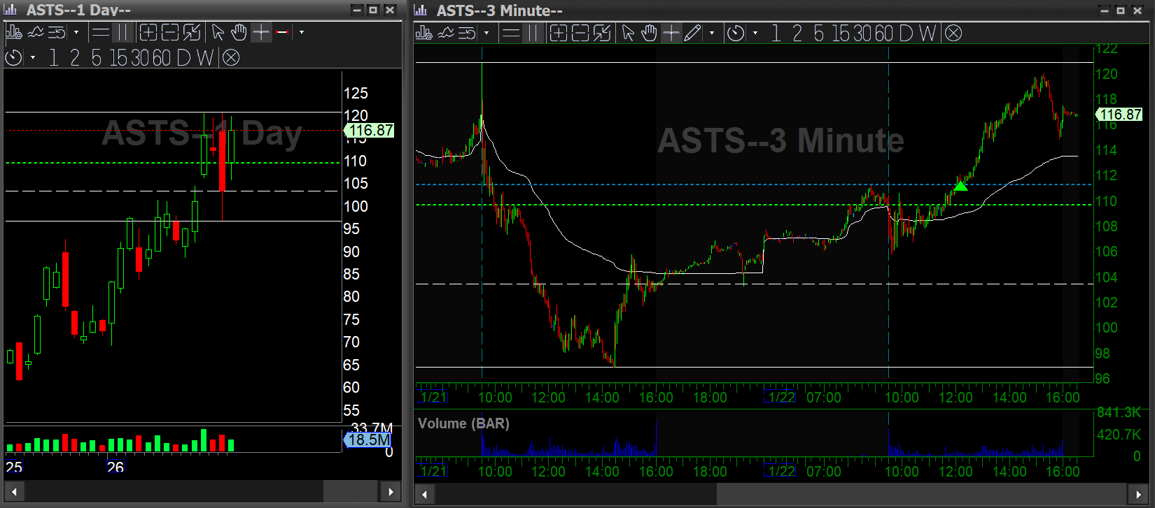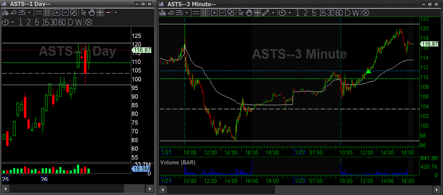 ASTS: Space stocks paused recently, but the bounce was too strong to ignore. Entered long on the intraday breakout for a swing.