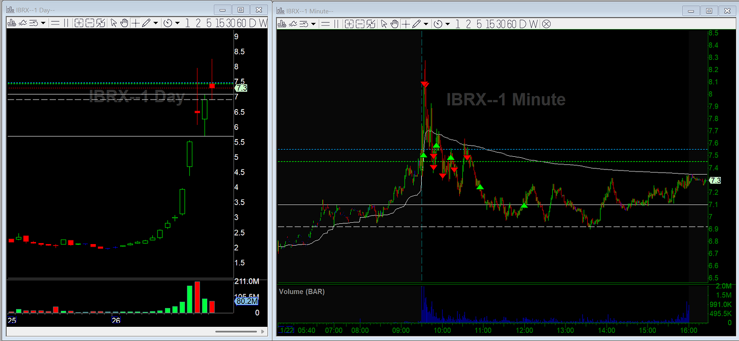 IBRX was a solid long early; then flipped short after the failed breakou.