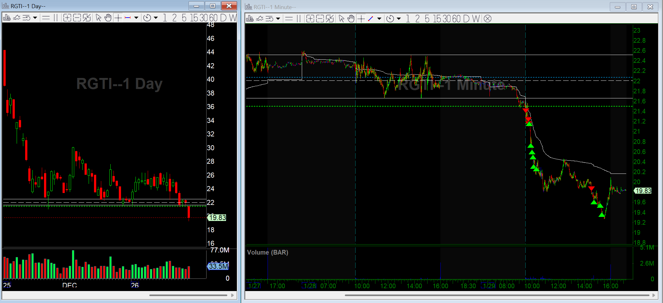 RGTI lost major daily pivots after negative news and trended lower all day.