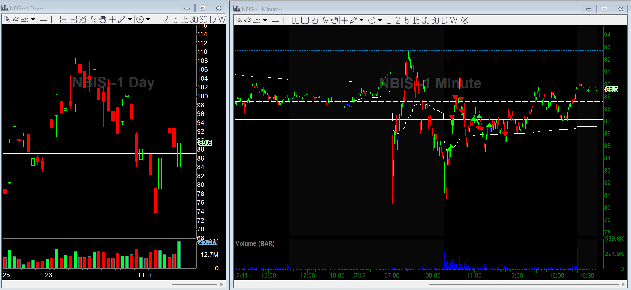 Long NBIS on earnings gap down reversal over HOD, nice push, scaled out.