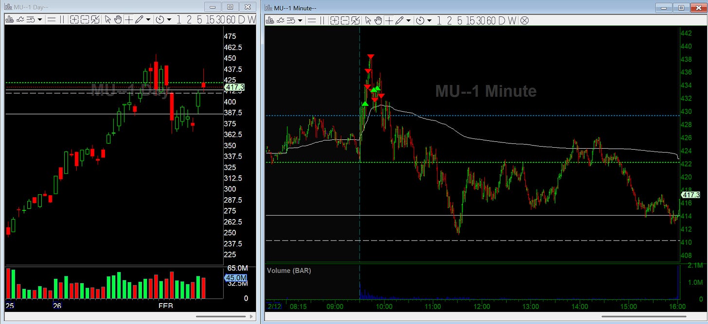 Memory names have been showing relative strength amid the tech weakness so I wanted to look for a continuation move. I got long MU on the break over premarket highs.