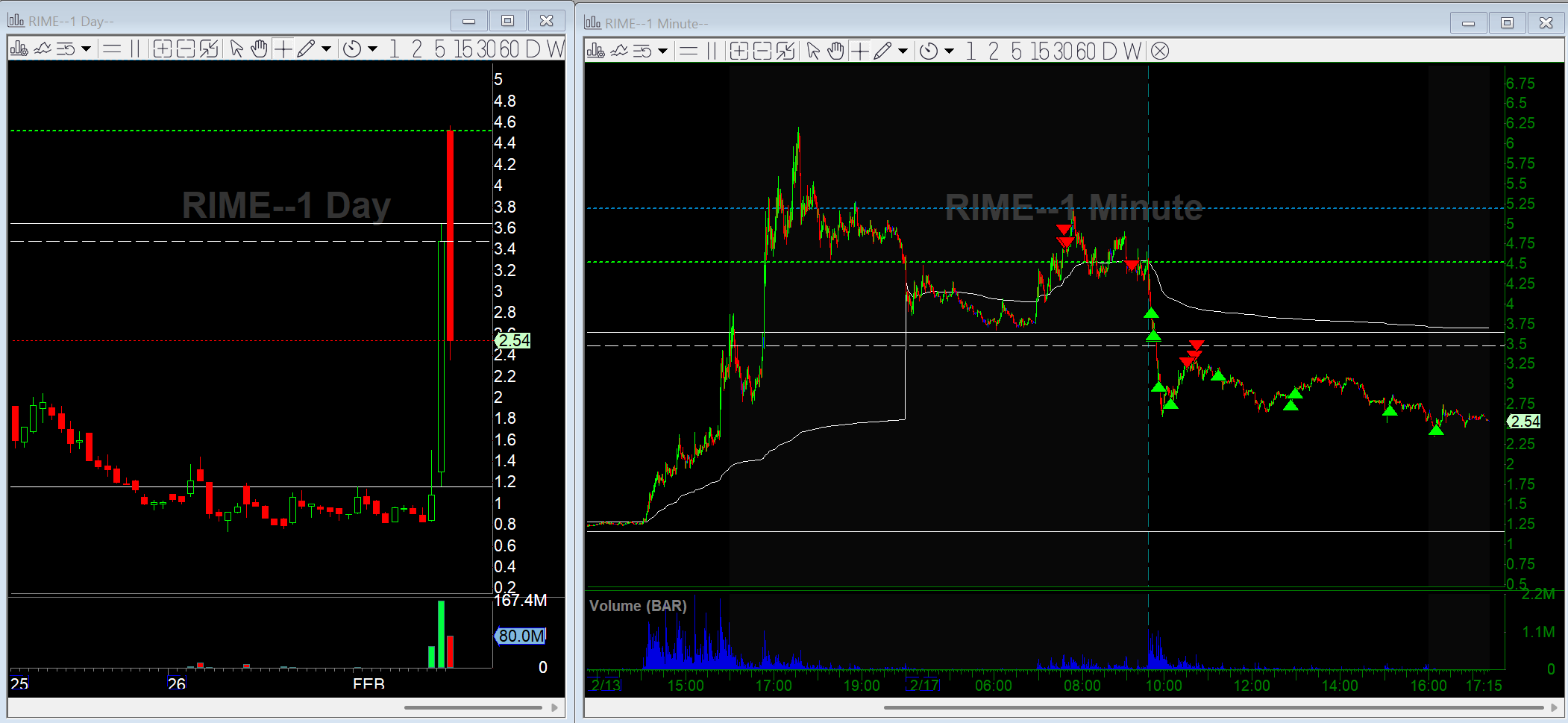 On the bounce, I scaled back into full size using a tighter risk level. From there, RIME just slowly bled back toward the lows throughout the day. I scaled out into that weakness and was flat by the close.