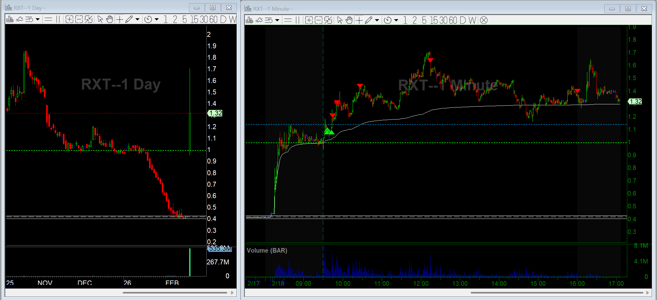 RXT was gapping on positive Palantir-related news with strong premarket volume. It also has a high institutional ownership (70%), plenty of cash, and no dilution. Long bias.
