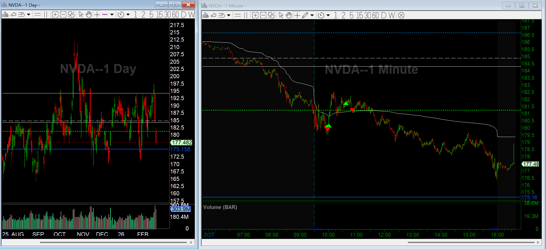 NVDA was still weak after earnings. It looked like it had room lower, but 180 was also a clear level and it was already extended from the gap down. I didn’t have a clear bias.