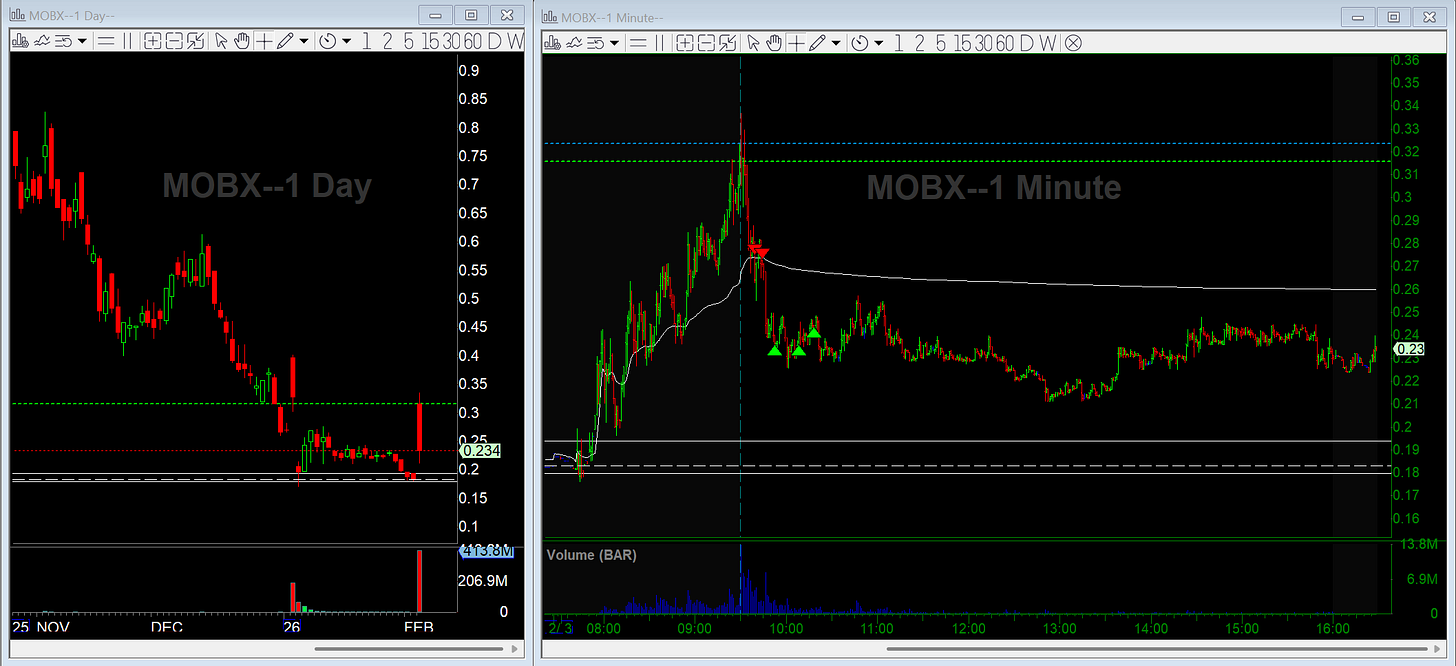 Quick fade on MOBX after it failed at pre-market highs.