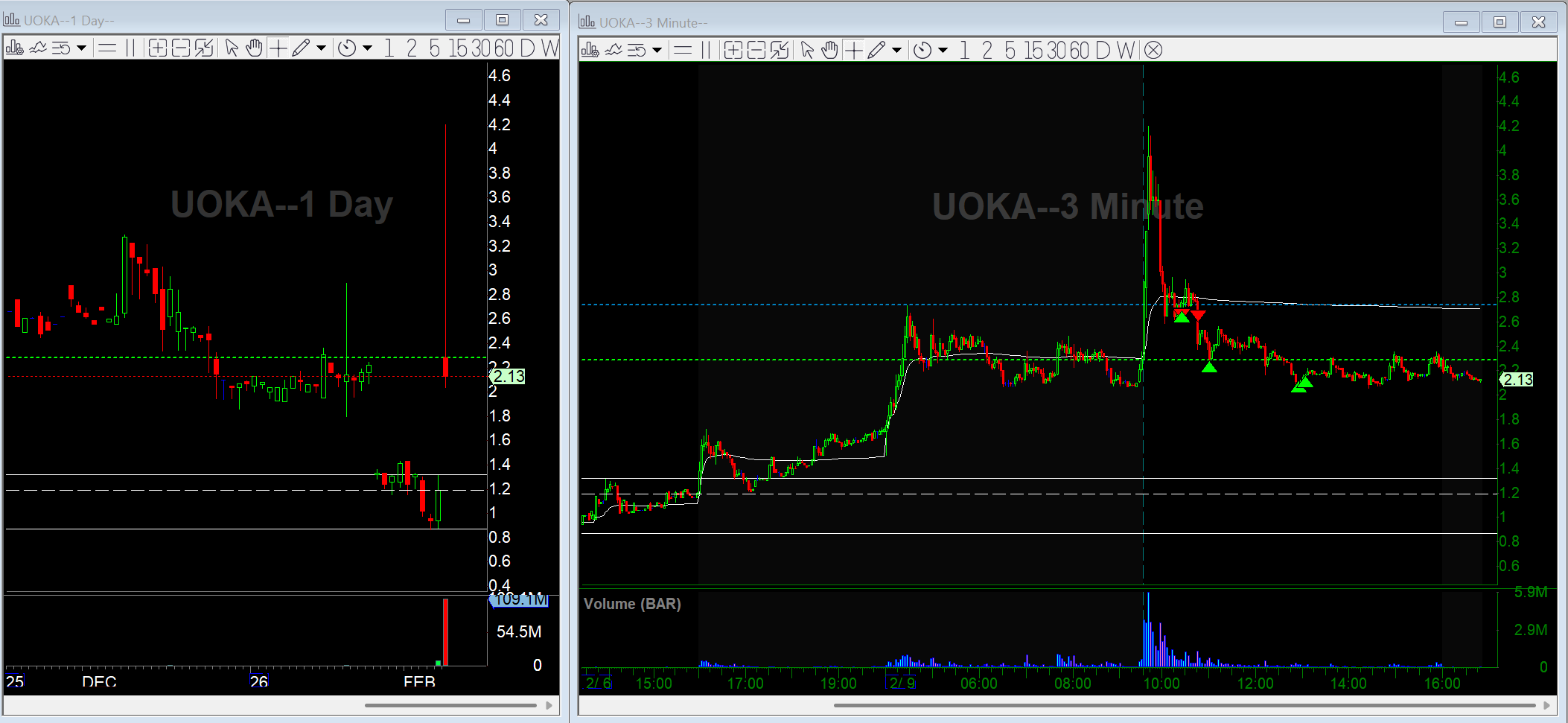 UOKA was the top gapper and nano float, rewarding patient entries.