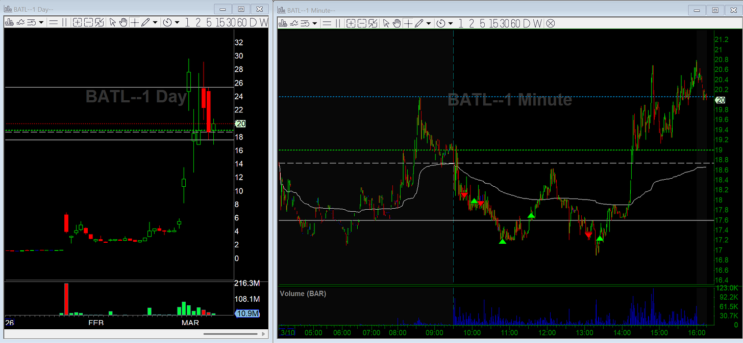 BATL stayed relatively weak alongside the oil trade. I initially shorted it when USO looked weak but took it off when crude failed to follow through.