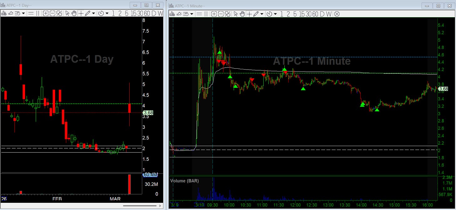 Best trades: ATPC fade and PLTR breakdown.