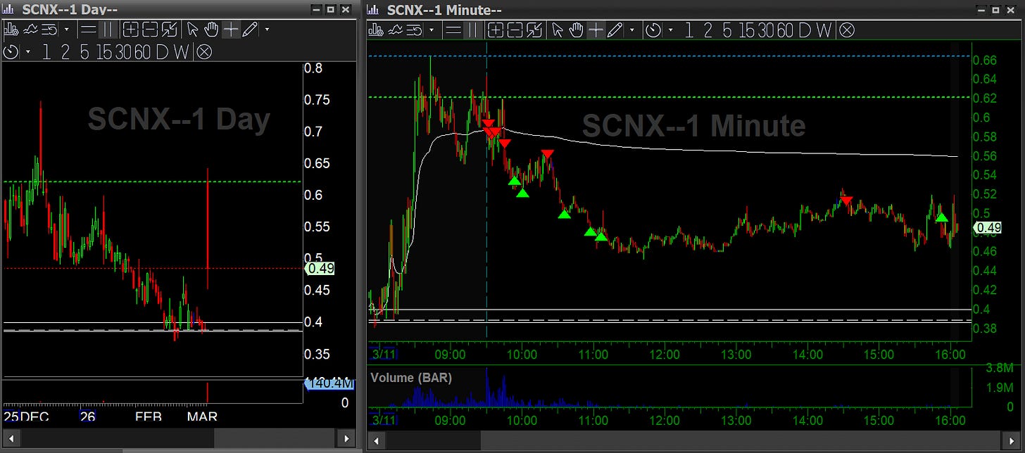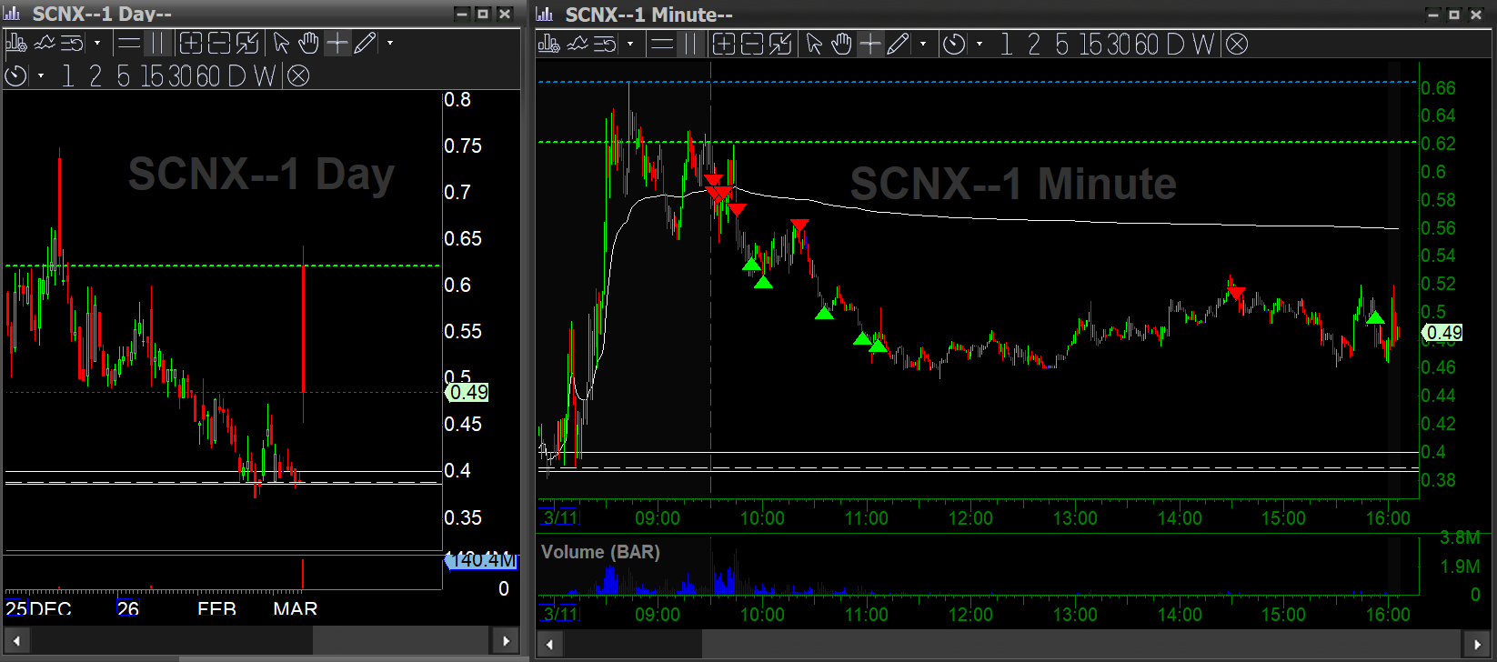Slow day overall. The SCNX fade was the cleanest trade of the day.