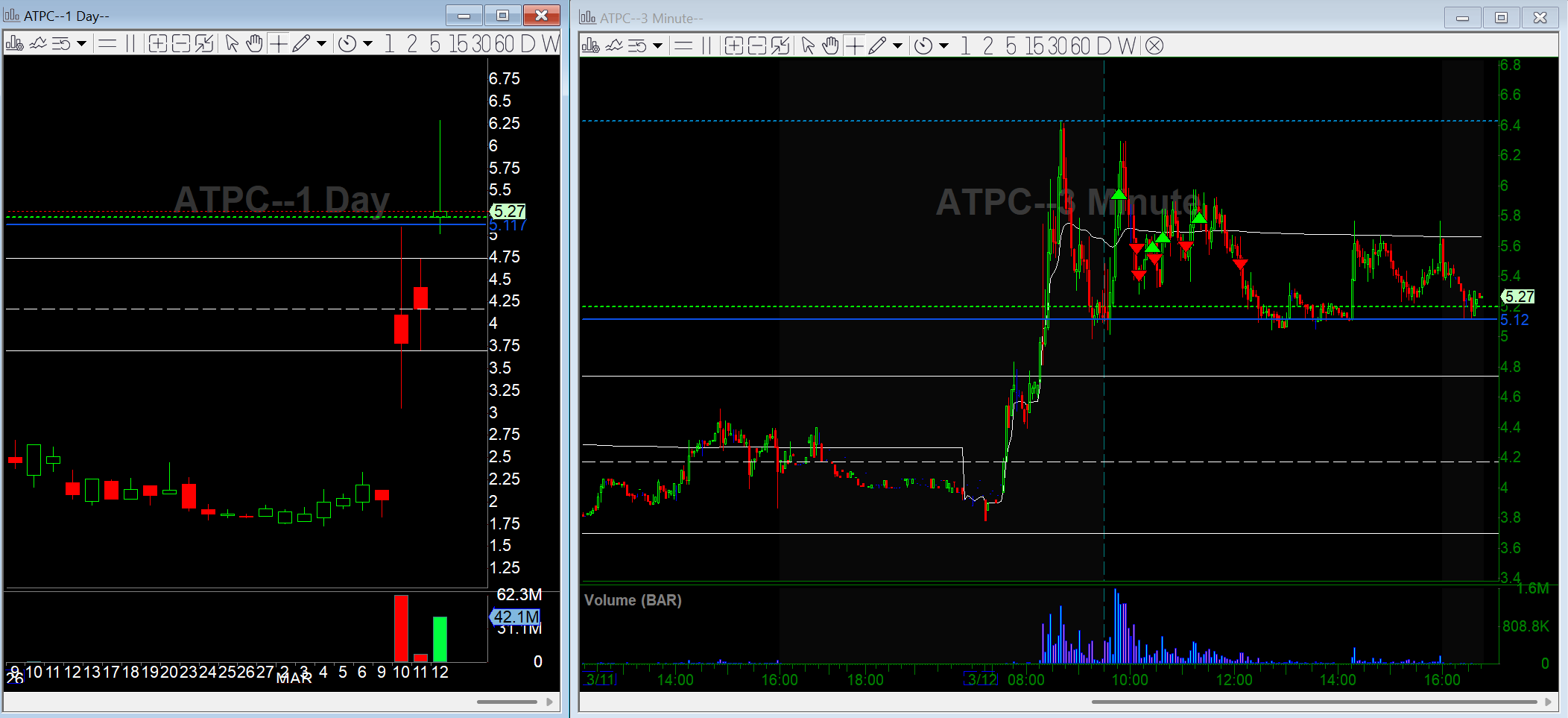 ATPC: Tried a few breakout longs but it never held strength and stayed under VWAP.