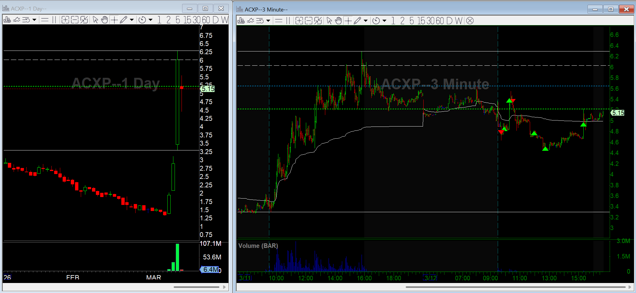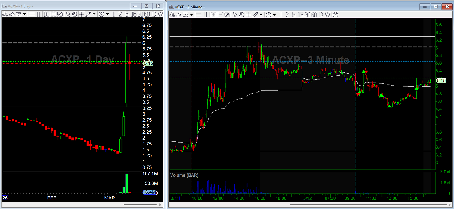 ACXP: Early ORB short stopped out on a random spike in a thin name. Re-short worked better but liquidity stayed sketchy.