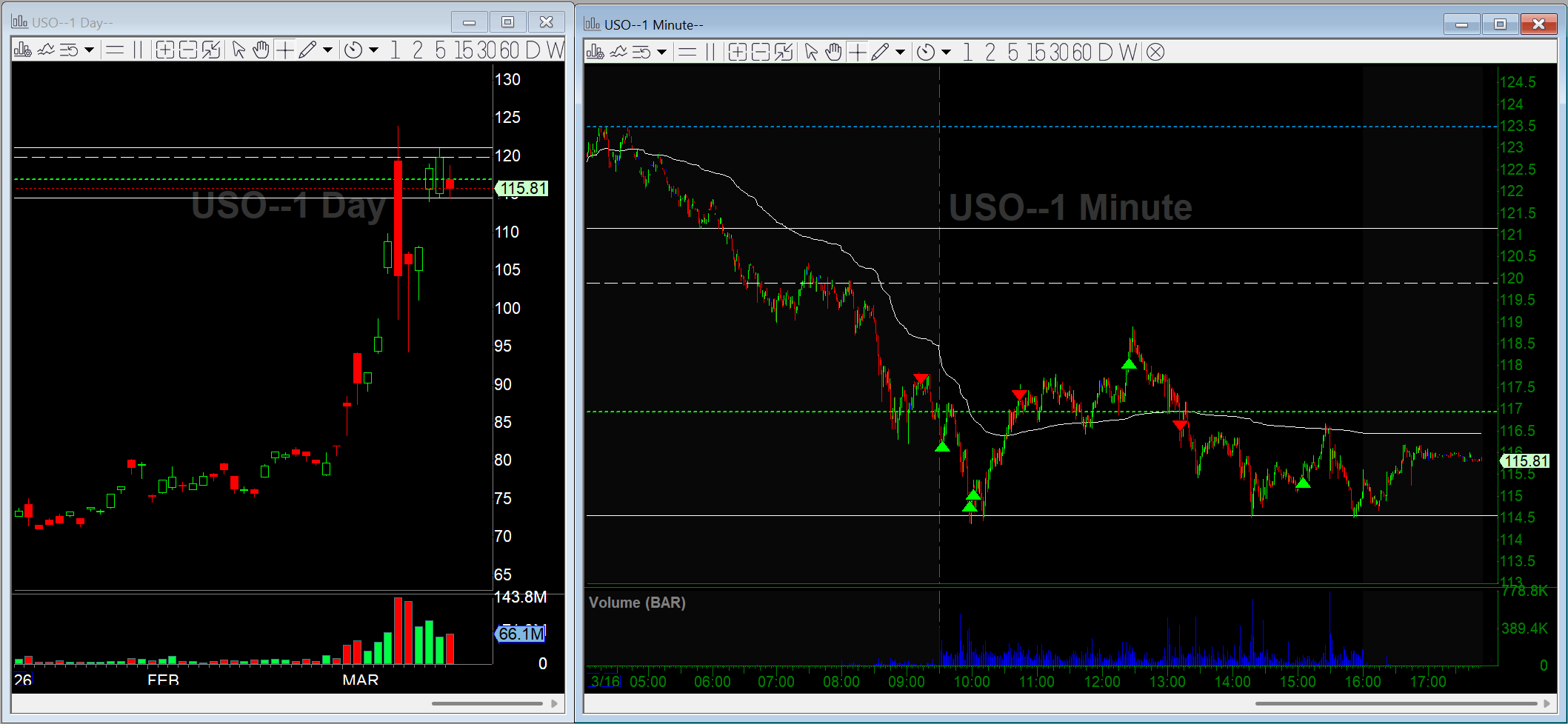 Oil gapped down overnight and sold off into the open. I took a small short in USO during pre-market looking for continuation into yesterday’s lows and covered into that level. Couple more small trades on it.