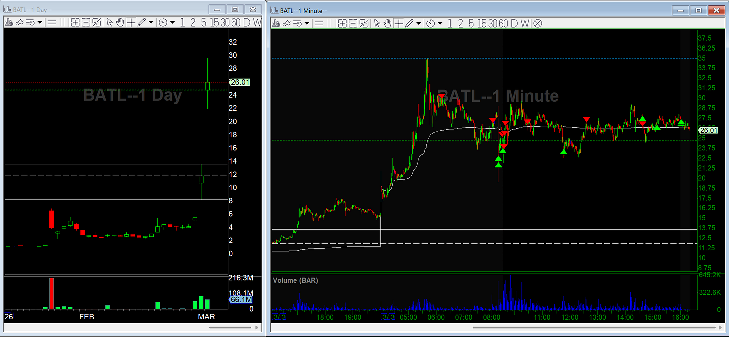 Nailed the premarket short in BATL after the T1 news halt.