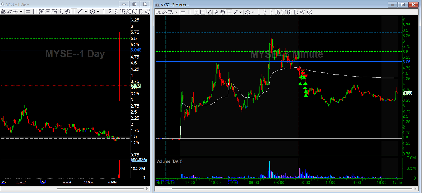 MYSE faded cleanly off an AI rebrand narrative, took it from 4.50 down to 3.50