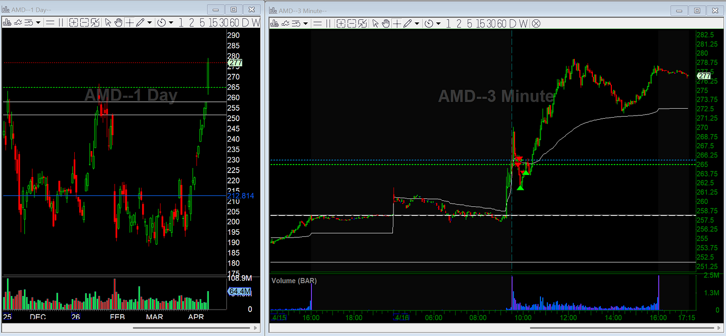 Same macro pullback idea, shorting under VWAP anticipating follow-through on what looked like early weakness on the QQQ. Market held up completely, AMD broke out strong, and in hindsight it was a great long setup, not a short.