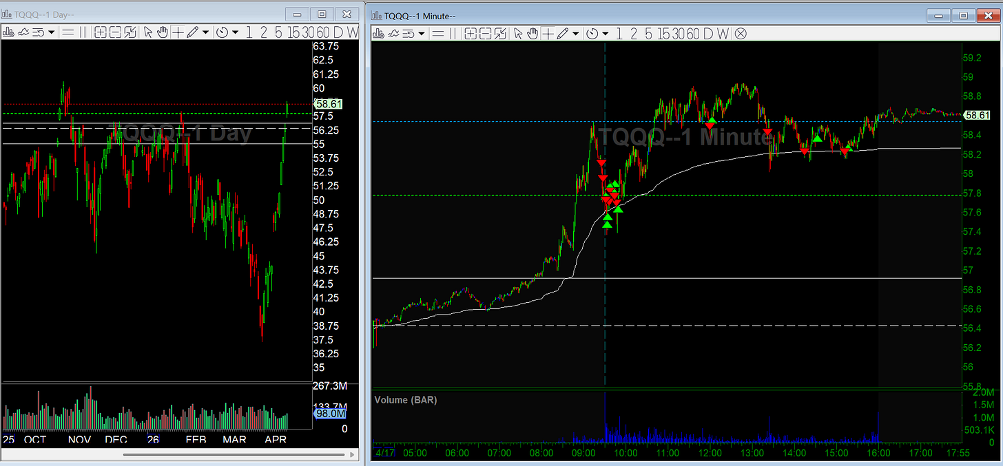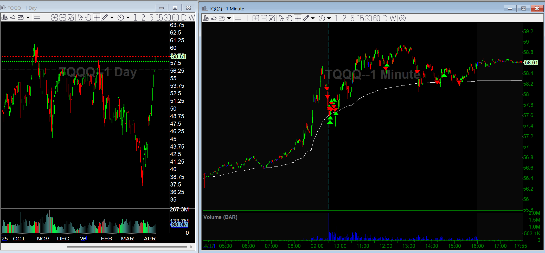The Nasdaq had only ever strung together a 12-day winning streak three times in its entire history, with never a 13th, so I came in short via TQQQ expecting a mean reversion. The market made history instead.