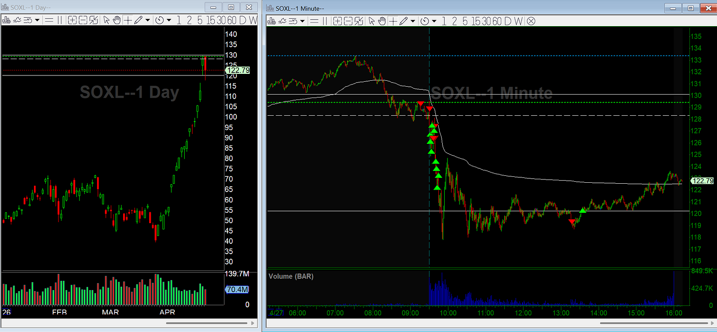 Nailed the SOXL short as semis finally pulled back after becoming stretched.