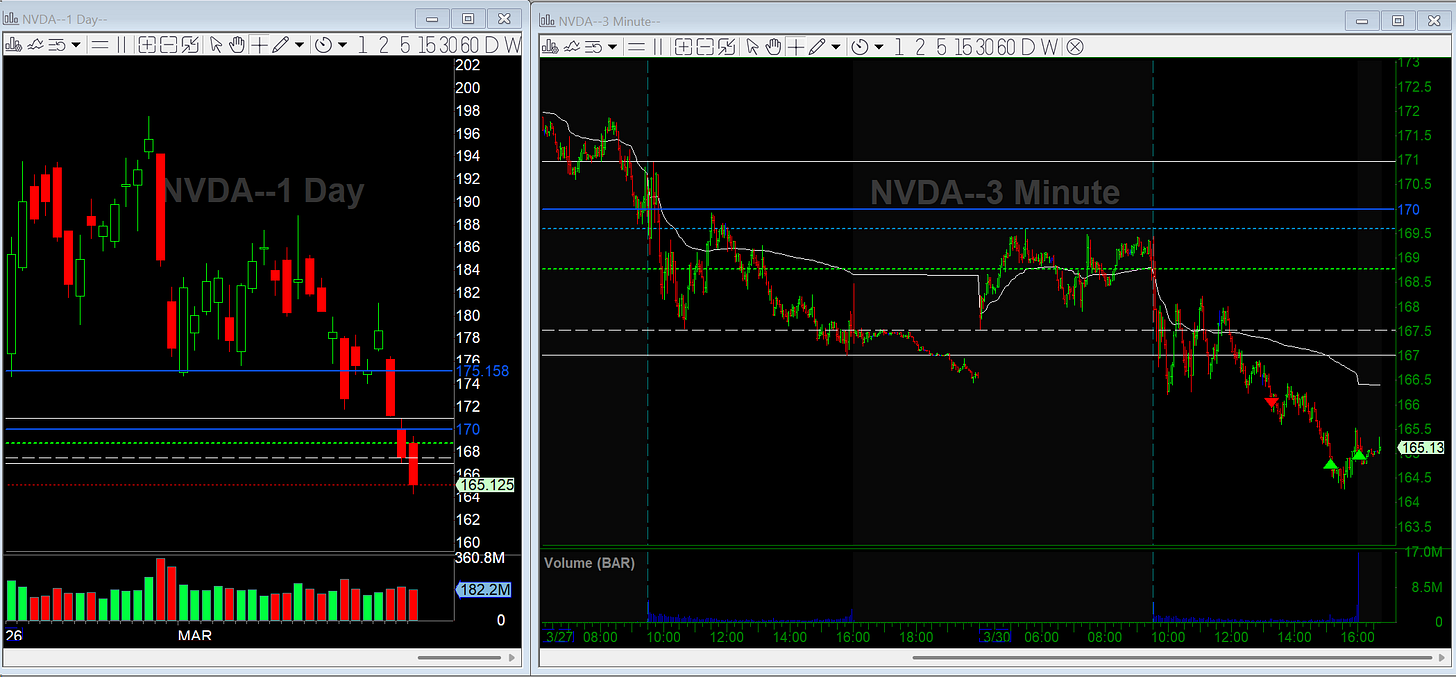 Shorted NVDA on the afternoon breakdown below the low of day range, covered at the close