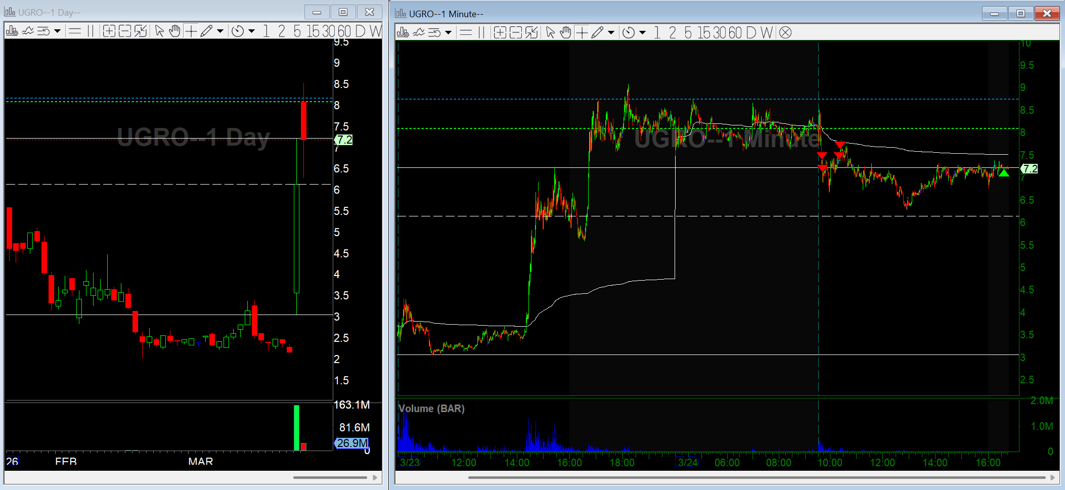 Today was a lesson in desk time. The PAVS and UGRO theses were both solid, but being away meant I couldn’t manage either position properly. If I’m going to be away, I either need to skip the trade entirely or accept that stop-only management is going to cost me on days like this.