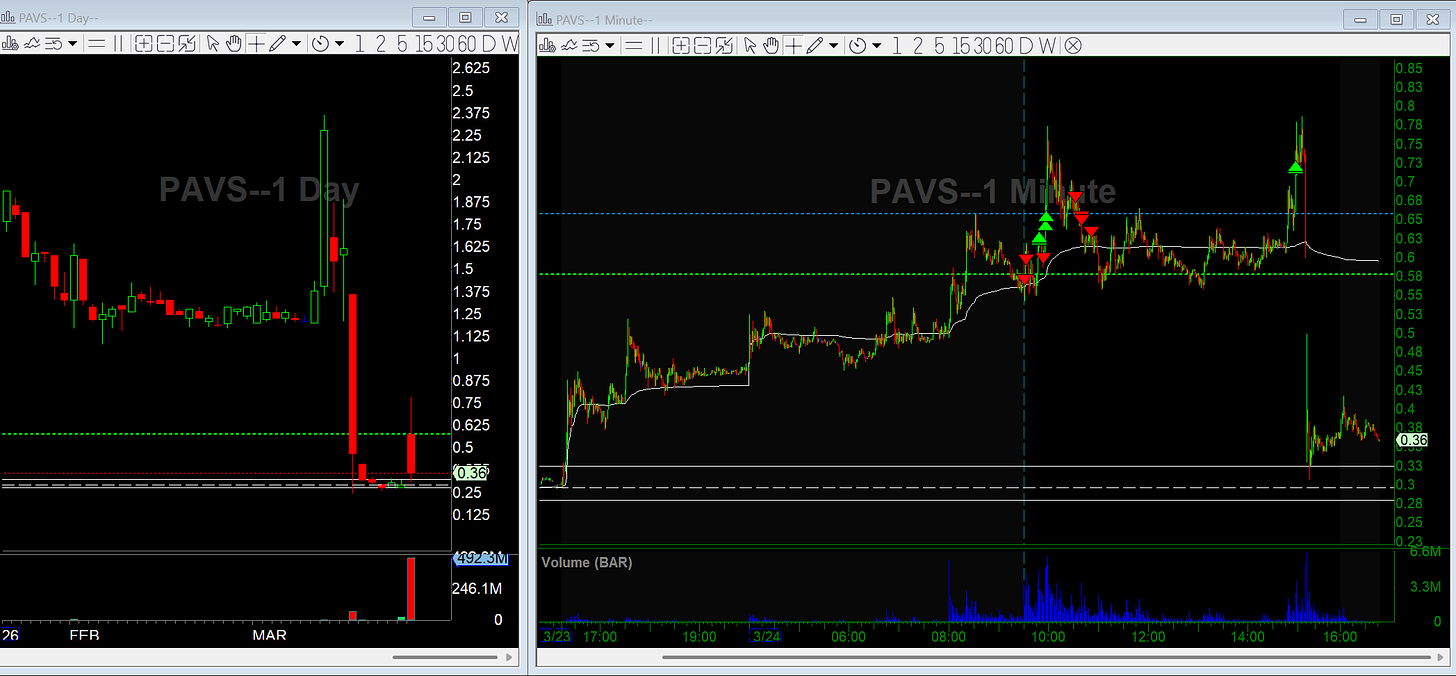 Shorted PAVS twice, stopped out both times, then it halted down on offering news minutes later.
