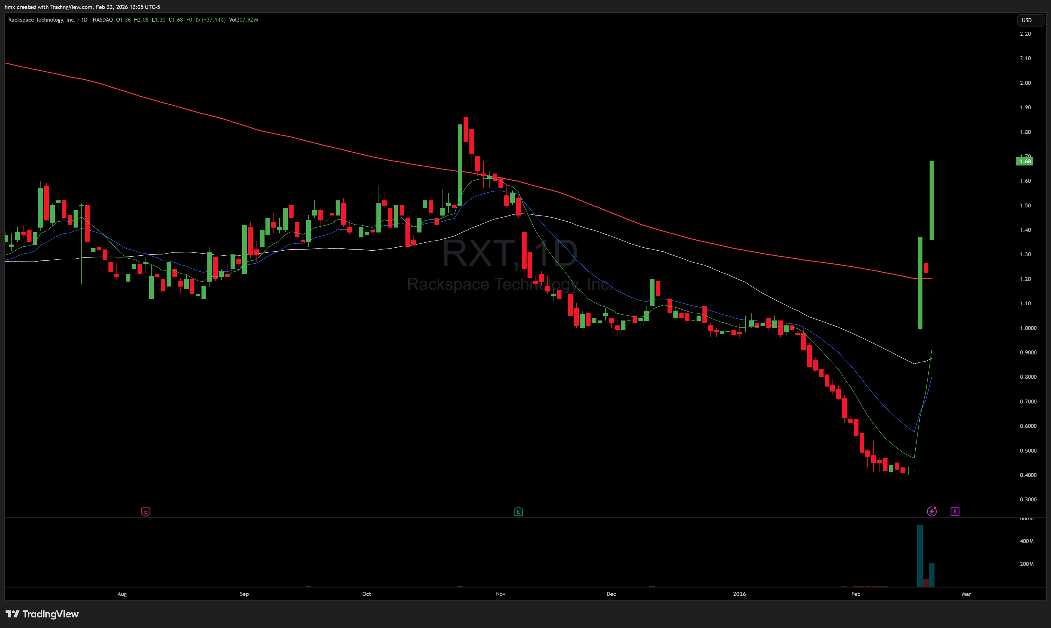 RXT 0.00%↑ big push over the 200sma, inside day, then breakout continuation on Friday, but closed under the D1 high. keeping on watch for either direction.