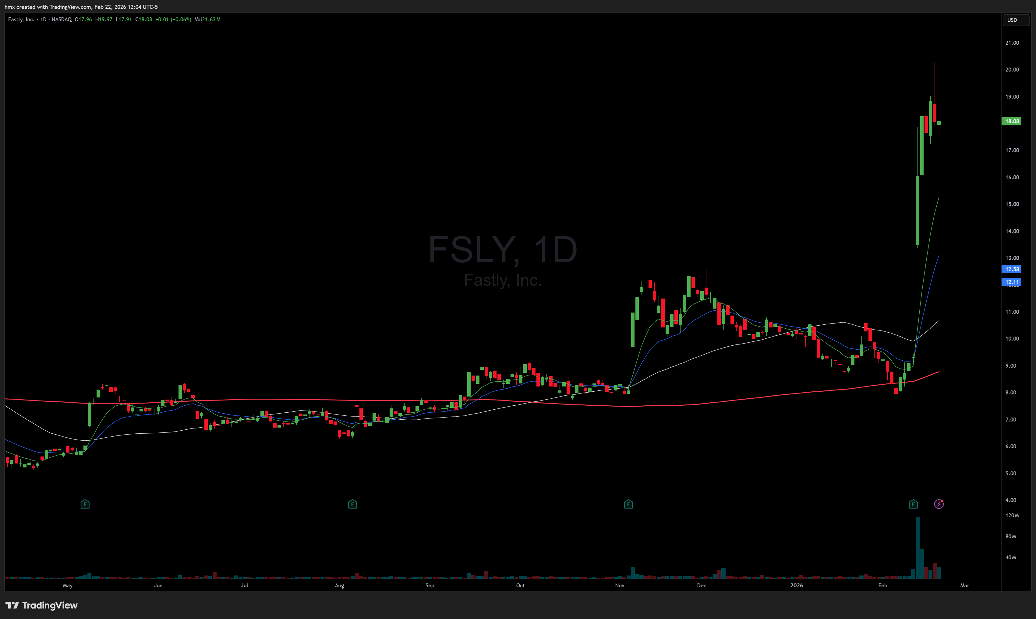FSLY 0.00%↑ strong move up from its earnings announcement but need to pullback to the MA’s before its next leg. watching for a daily bar break.
