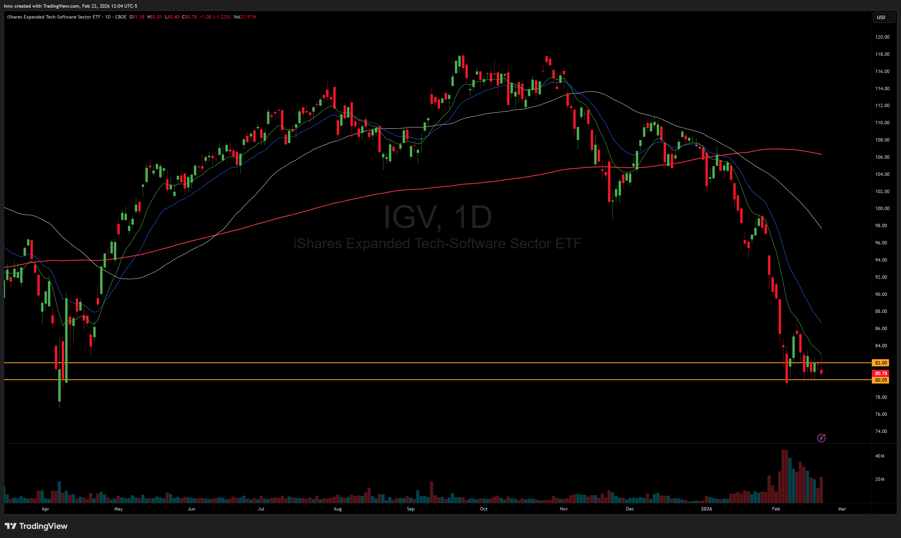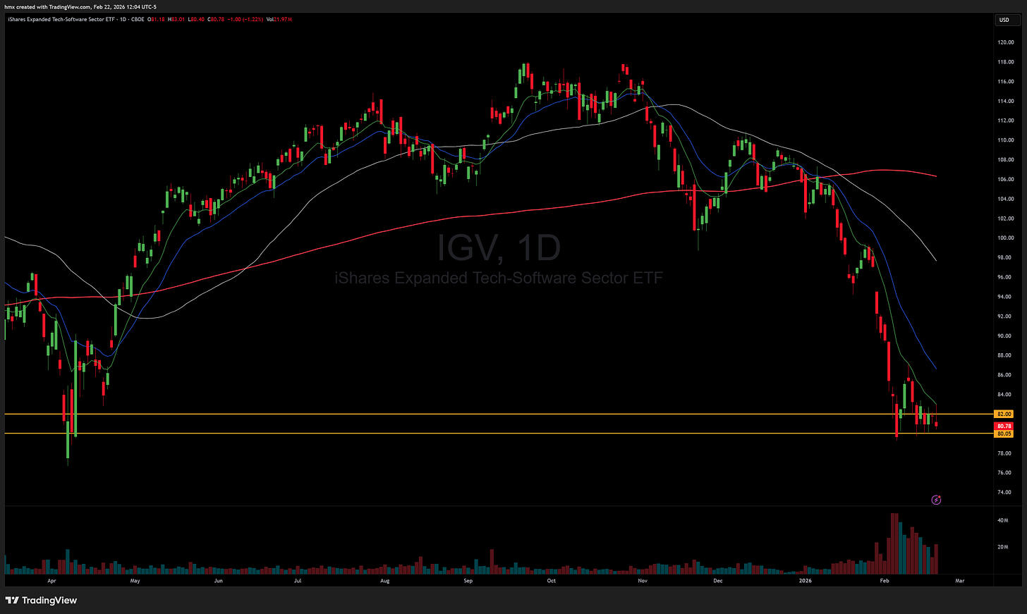 IGV 0.00%↑ forming a big bear flag near the lows, could get ugly if this breaks down under $80.