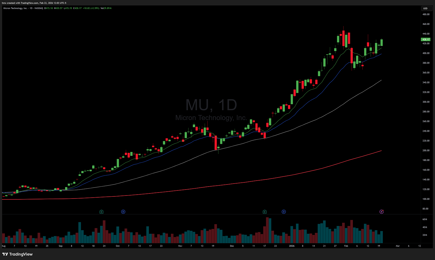 MU 0.00%↑ / SNDK 0.00%↑ memory names continuing to show a bid amid uncertain markets.