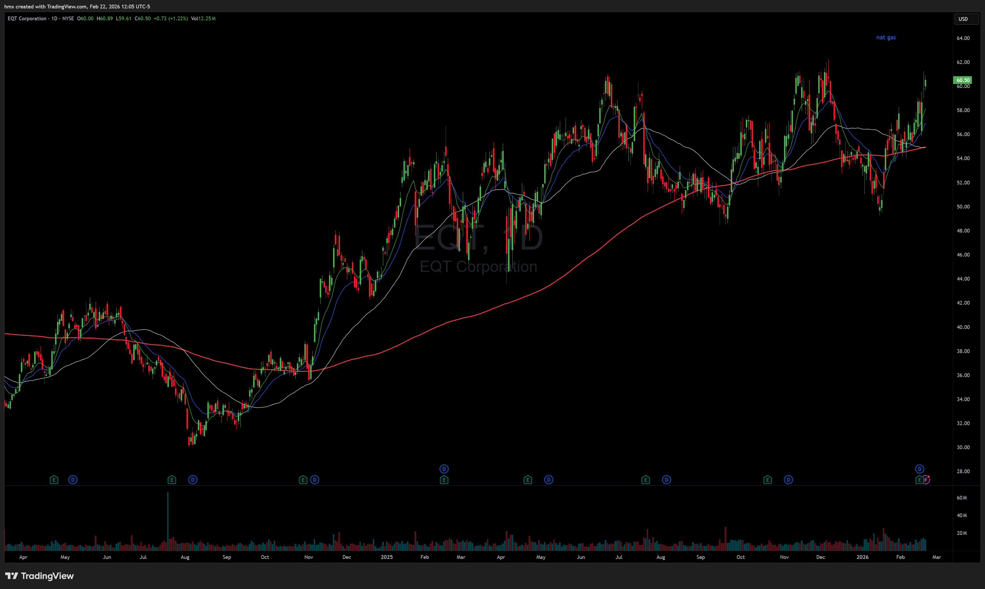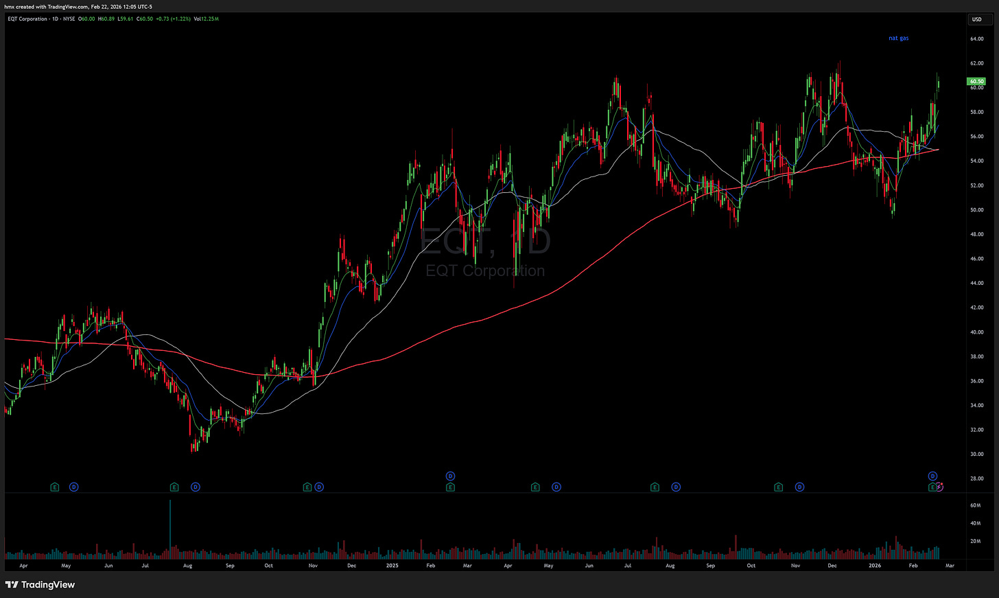 EQT 0.00%↑ nat gas name showing strength with a big breakout over 62. would like to see it get tighter before breaking out.