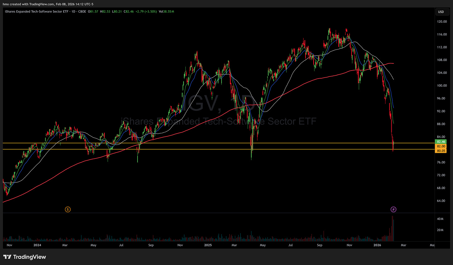 IGV 0.00%β / PLTR 0.00%β Not too confident in software giving a V-shaped bounce at this point. Feel like it had the chance to do it on Friday and didnβt. May be a choppy reversal.