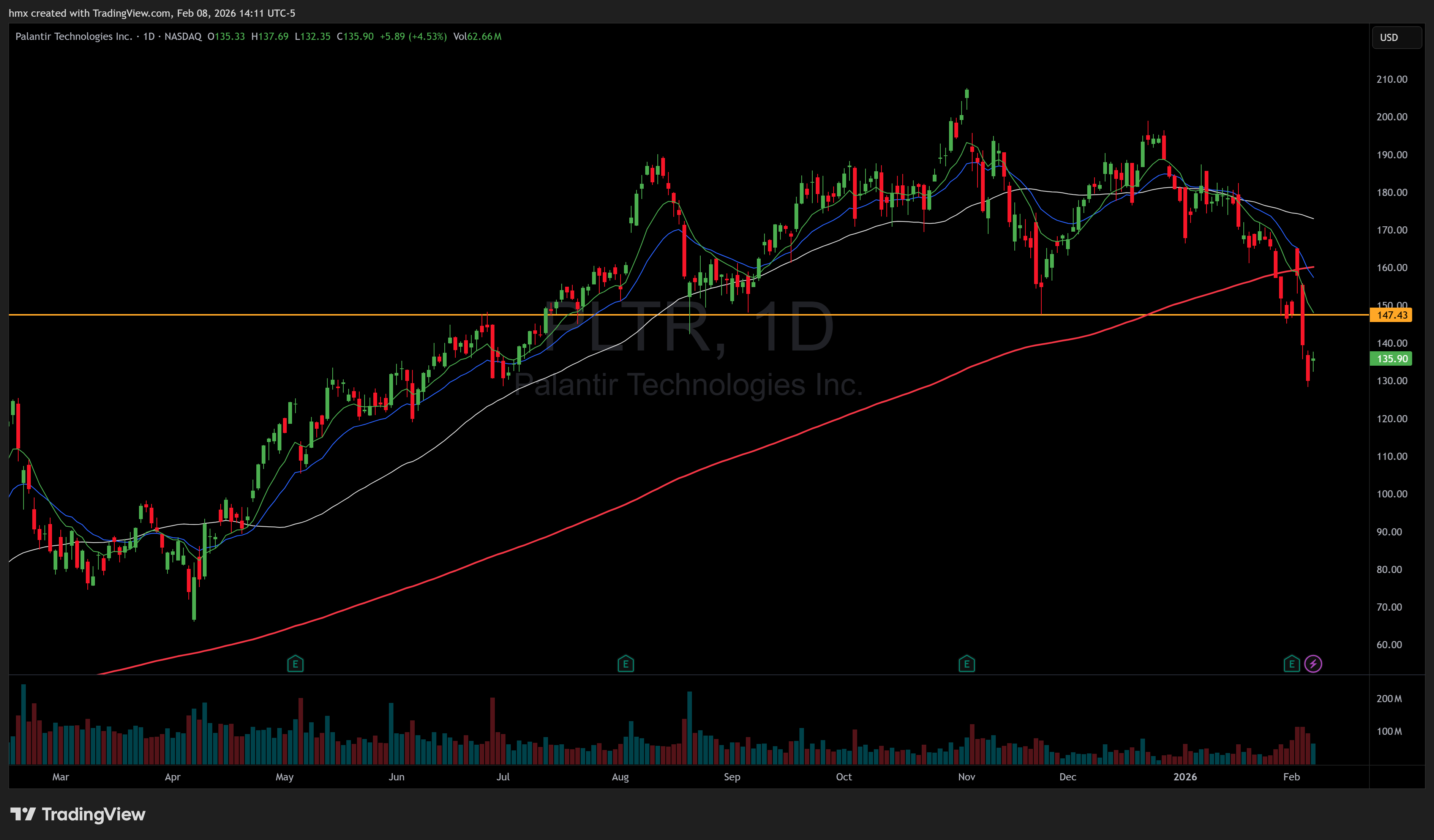 PLTR 0.00%β delivered another strong quarter, with revenue and margins coming in ahead of expectations and continued strength tied to government contracts and AI-related demand. Shares initially traded sharply higher on the release, but reversed and sold off alongside broader weakness in software.
