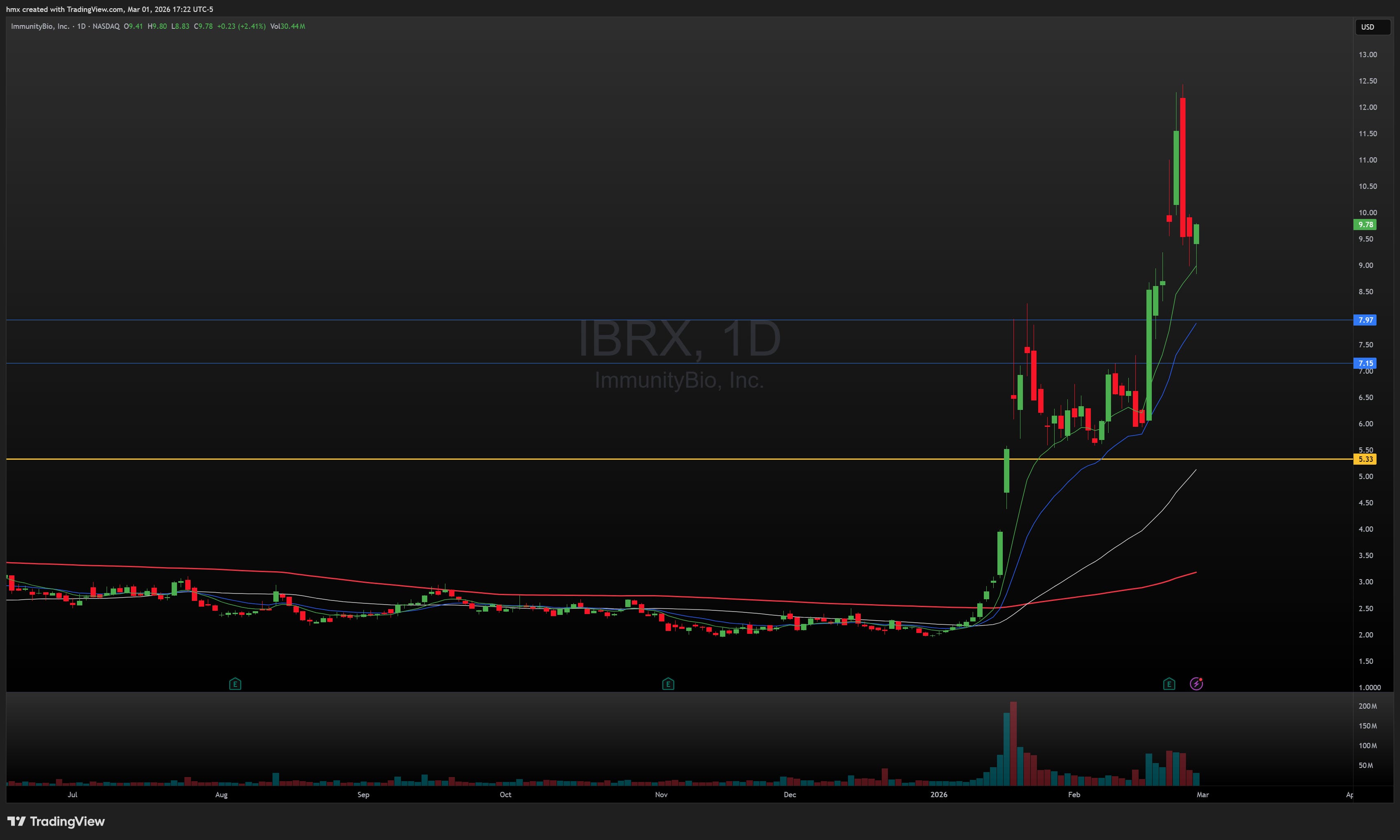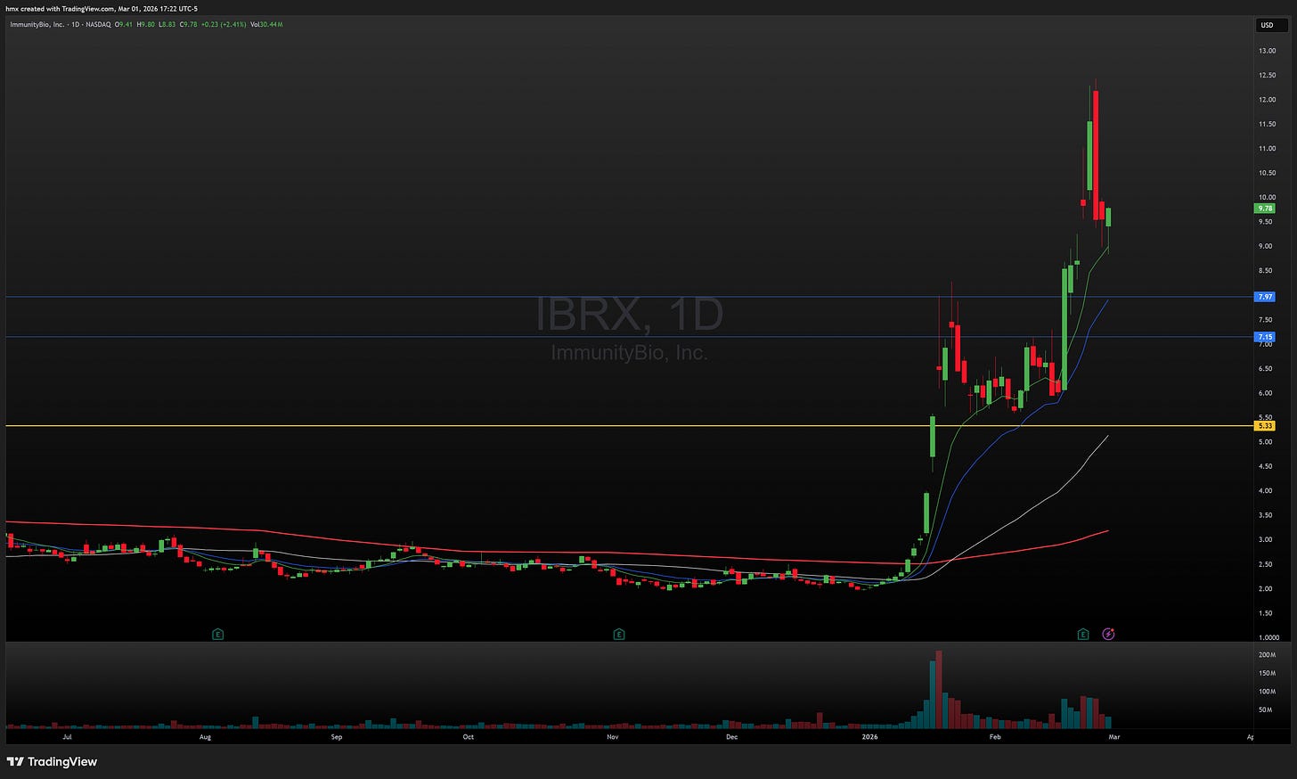 Low-float small caps are still in a neutral cycle. IBRX was the main multiday in play name giving setups on both the long and short side. It has an update coming out on March 3 that I’ll be keeping an eye on. XWEL and ALBT both put in early spikes and heavy turnover that eventually gave way to backside fades once they lost VWAP and prior day levels. ENSC was a strong gapper on Friday with very high volume but started showing late‑day weakness. Most gappers are still failing within a day or two.