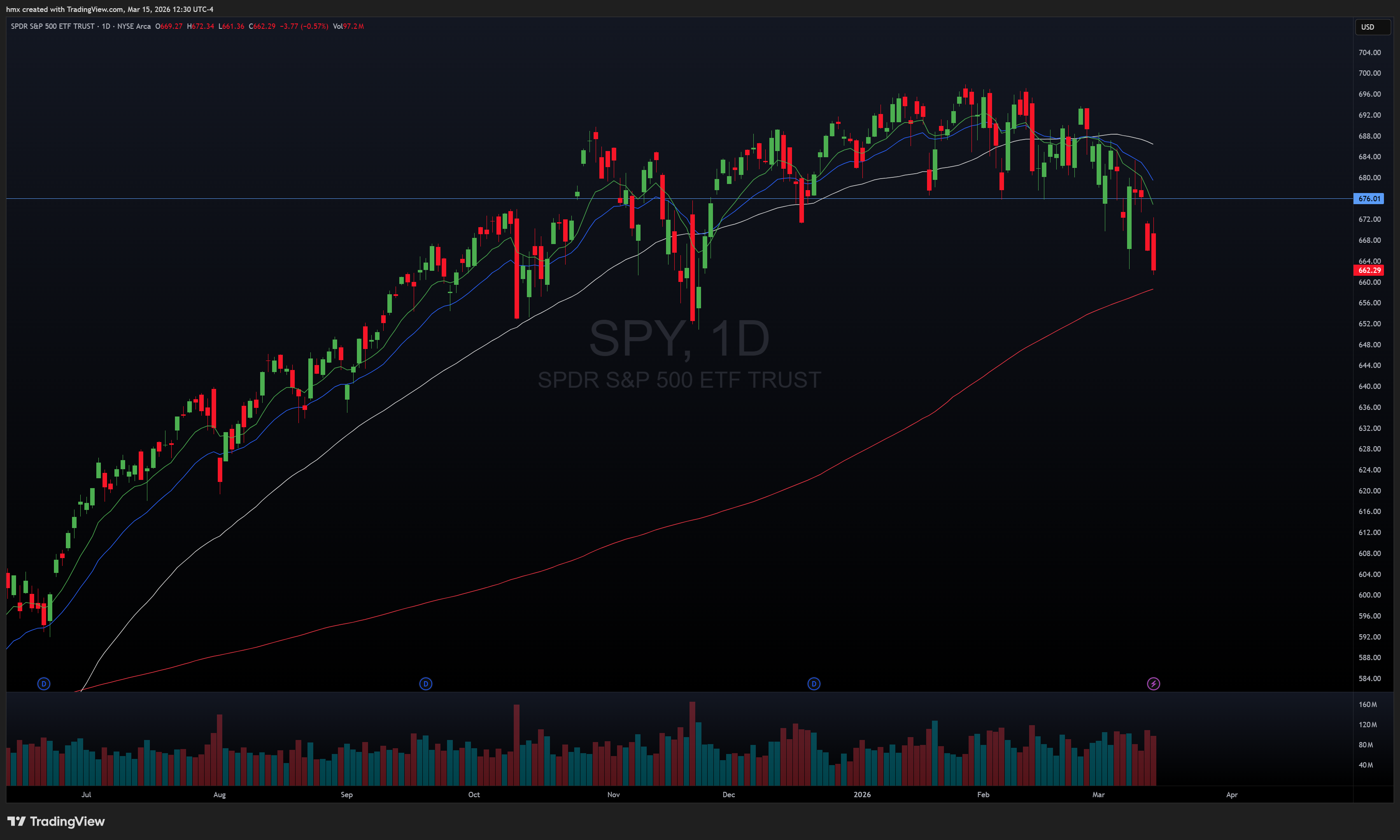 That optimism didn’t last long and by Thursday the damage continued. Iran struck two oil tankers, crude surged roughly 10% on the session, and Iran vowed to keep the Strait of Hormuz closed. The IEA called it the largest oil supply disruption on record. $SPY dropped about 1.5% on the day.
