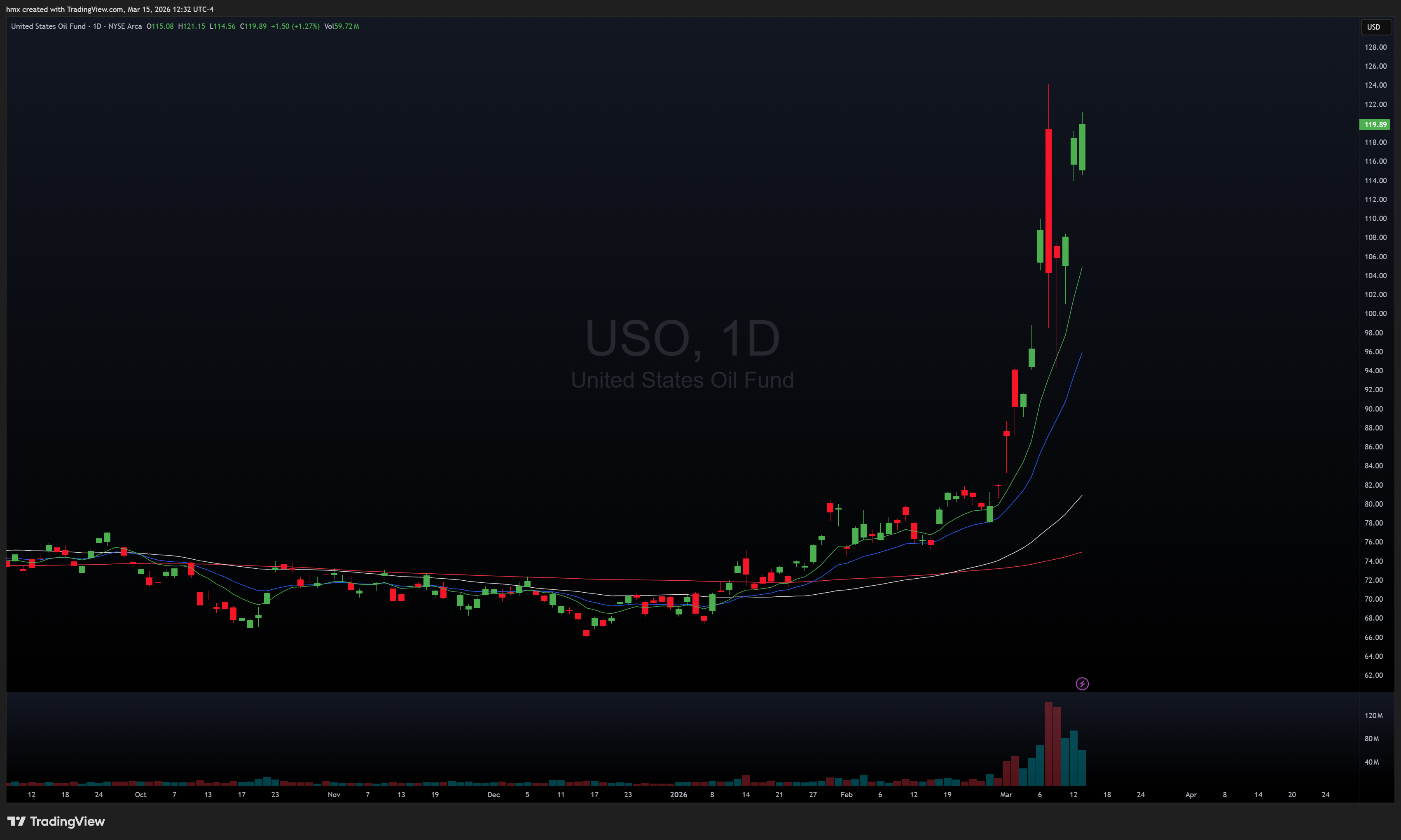 USO: oil pushing back toward the highs, curious to see if it has another leg or if supply steps in early this week.