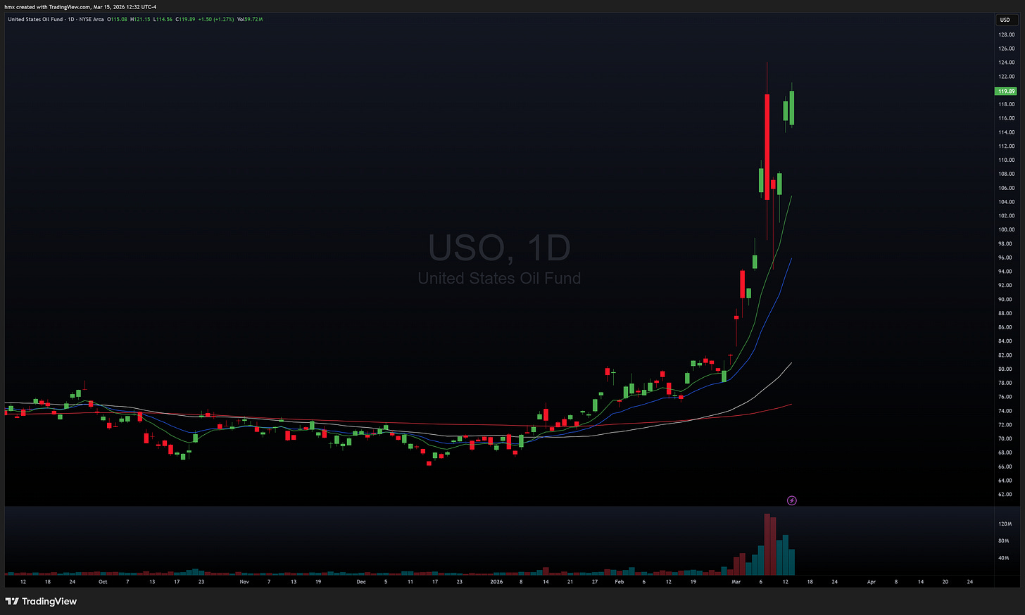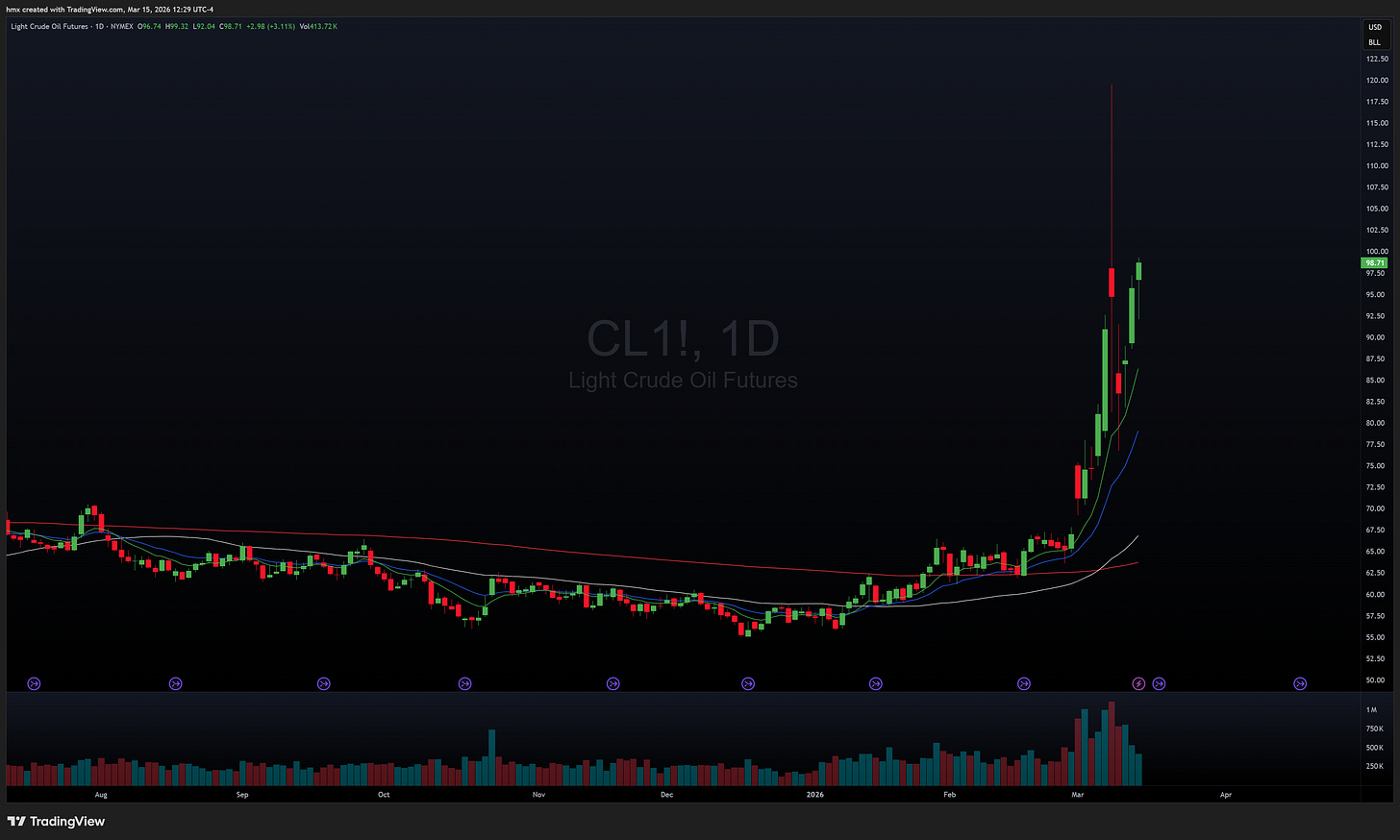Oil dominated everything this week (again). Monday opened with a massive gap up in crude after Iran/oil escalation fears sent energy ripping and everything else scrambling, then reversed hard into the close after Trump announced the conflict was “over,” giving $SPY a bullish engulfing candle that felt like a gift.