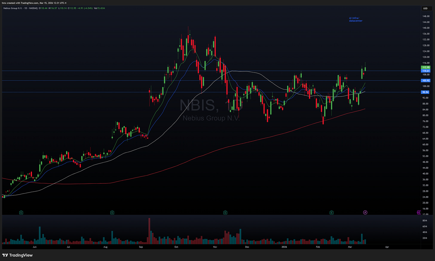 $NBIS showed real strength on news of a $2B $NVDA investment, and memory names like $MU and $SNDK held firm while most of tech bled.