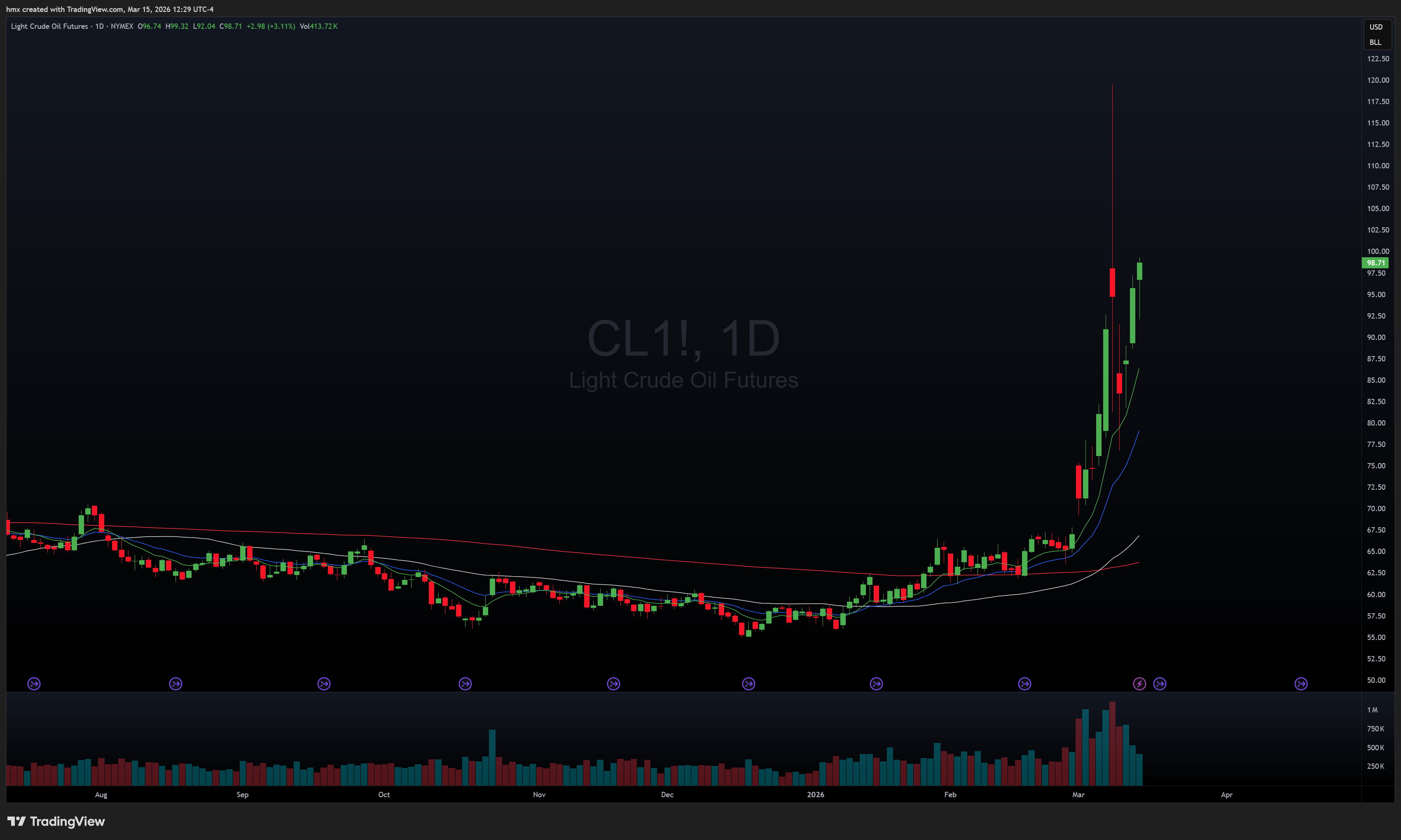 Pockets of strength were worth noting. $XLE was the only sector that really worked as oil producers caught a direct bid from crude pushing toward $100. $HIMS ripped about 44% Monday after Novo Nordisk dropped its patent lawsuit and signed a deal to distribute branded Wegovy through the telehealth platform, with 35.5% short interest adding squeeze fuel.
