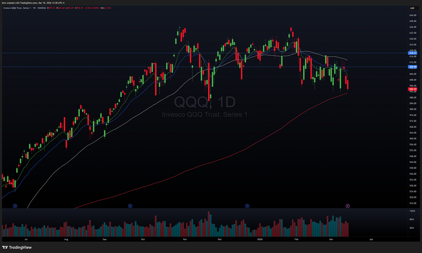 Friday offered no relief either, $SPY sold off to fresh YTD lows while $VIX stayed elevated near 27. On the week, $SPY finished down about -1.5%, $QQQ held up better at roughly negative -1%, and $IWM lost around -1.7%.