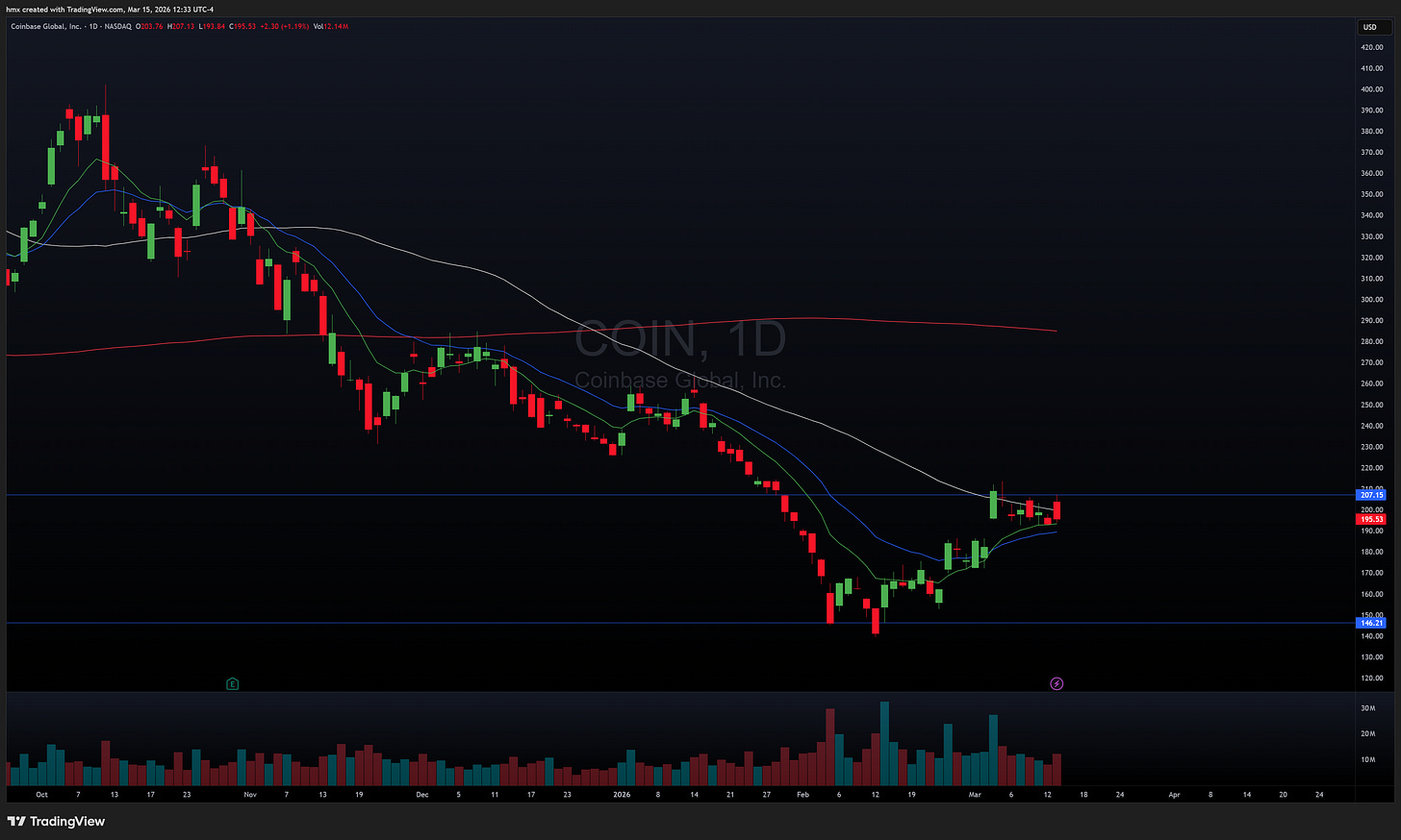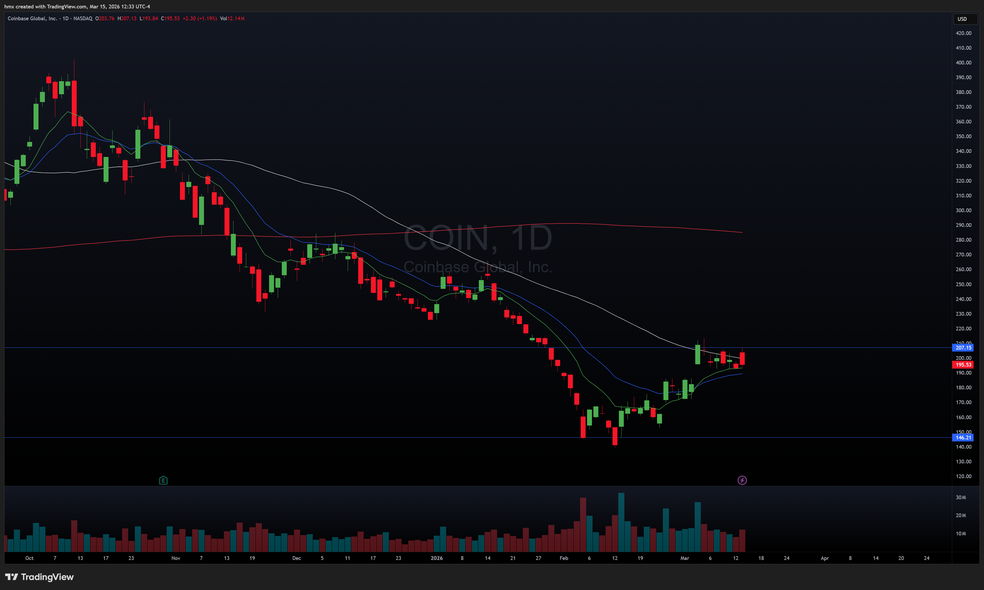 COIN: lost levels on friday but if it can somehow reclaim and hold, that sets up a clean momentum move back through the range.