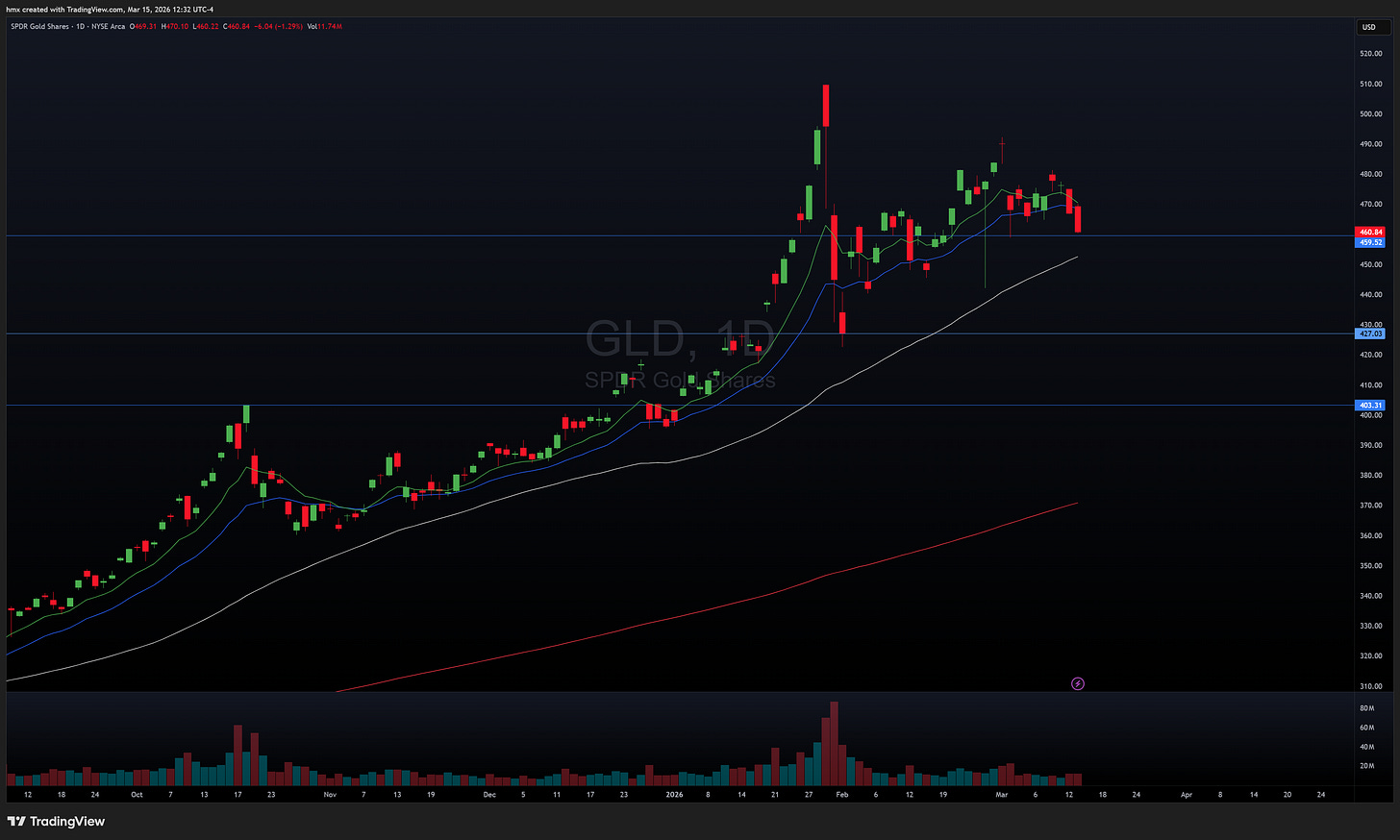GLD: gold showing some notable weakness and starting to disconnect from the usual safe-haven flows, worth watching if that continues.