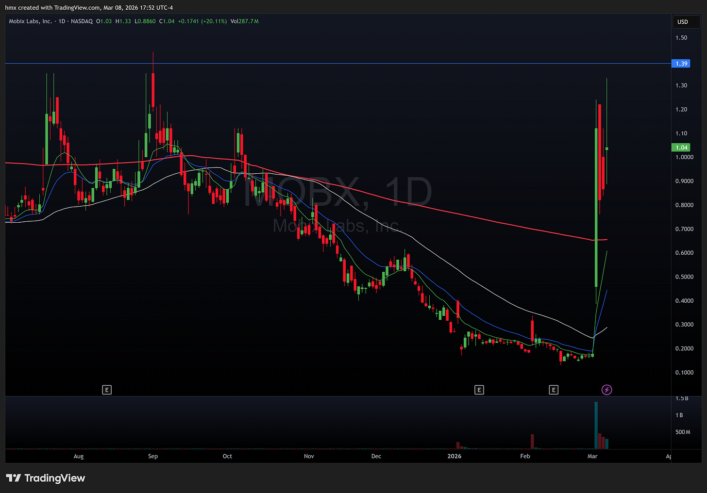 MOBX 0.00%↑ was a top gainer this week, ripping over 500% from $0.17 to a high of $1.33 on absolutely absurd volume, turning over nearly 2.5 billion shares against an 83.7 million share float. While it closed the week near $1.04, the move from sub-$0.20 was the kind of parabolic action that defines these cycles. BATL 0.00%↑ also had a monster week, doubling off $10.70 and tagging nearly $30 before settling around $22.36, showing more staying power than most low-float runners tend to. PRSO 0.00%↑ ran 145% and actually held near highs, closing at $2.04 just under its $2.10 weekly peak. TPET 0.00%↑ was another name that caught a bid, gaining 83% on 1.5 billion shares traded, though it gave back a decent chunk from its $2.50 high to close at $1.93.