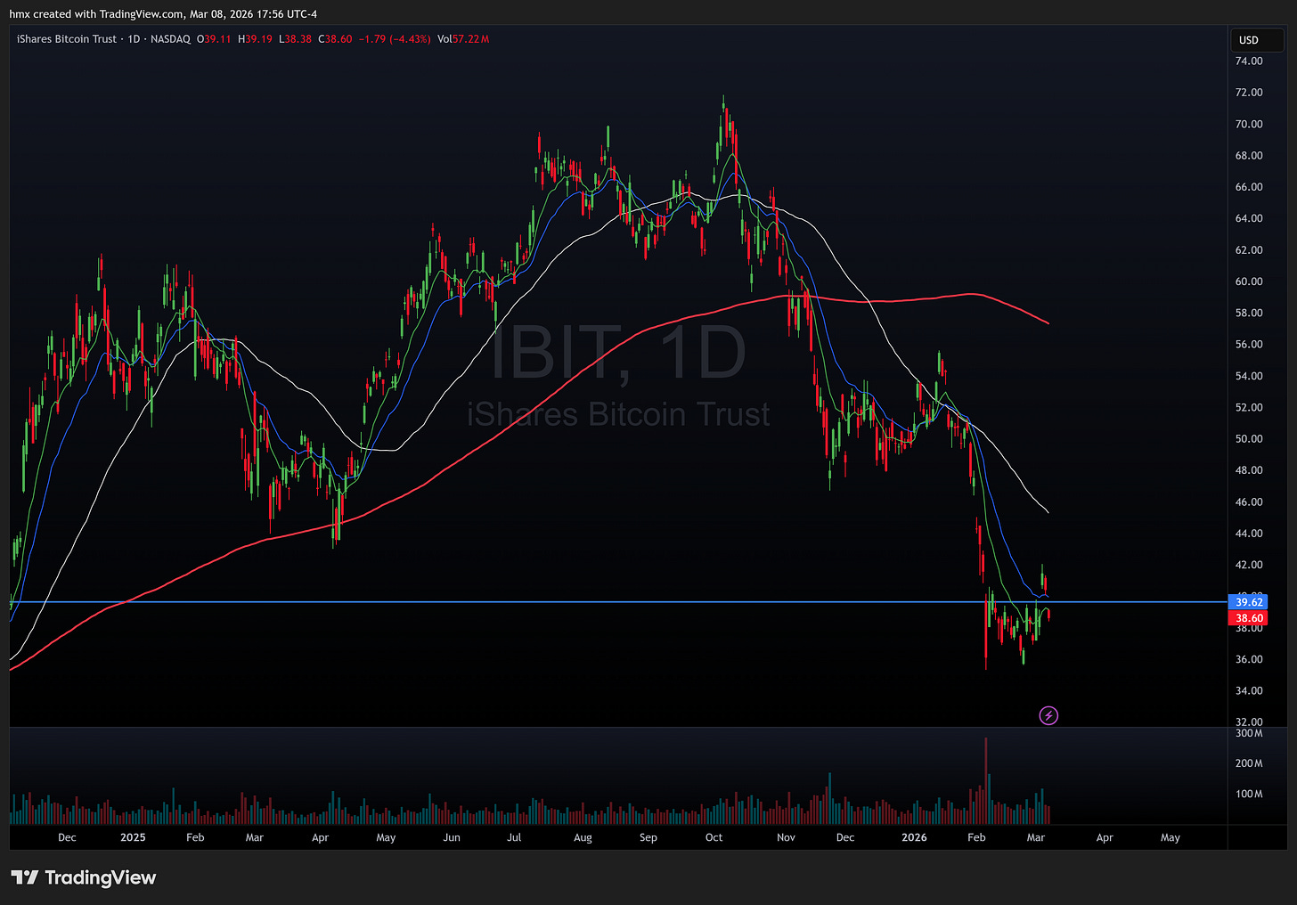 IBIT 0.00%↑ - bitcoin and crypto names tried to break out of their short term bases but quickly fell back into range, signaling weakness and no follow through.