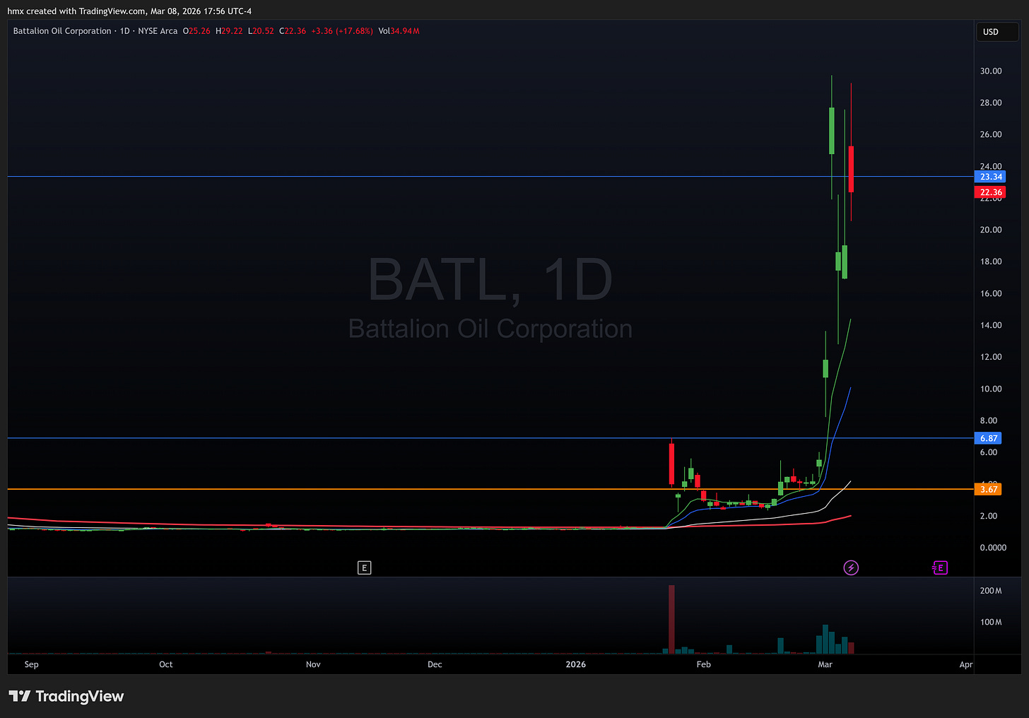 BATL 0.00%↑ / TPET 0.00%↑ - small cap oil names riding the crude move, watching for an open bias play if they gap with volume.