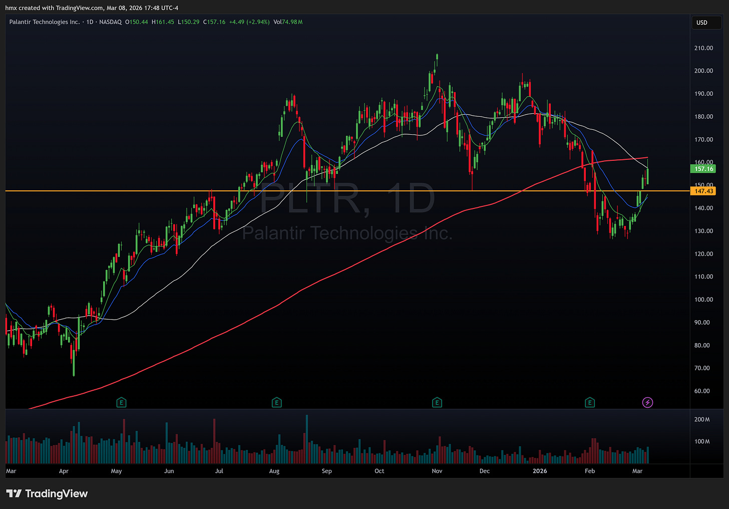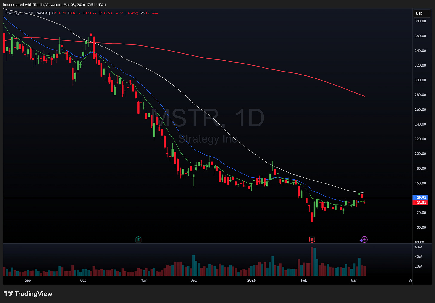 Defense names soaked up the fear bid, with PLTR 0.00%↑ spiking nearly 6% intraday Monday on the classic war rotation, though it’s still down 18% year to date and just confirmed a death cross. CRWD 0.00%↑ beat earnings by a mile, 51% EPS beat, and barely got a sustained reaction because nobody cared about cybersecurity margins when crude is repricing the entire market. Meanwhile NVDA 0.00%↑ dropped a $2 billion investment into COHR 0.00%↑ for AI optical networking, sending it up 10% Monday, but even that got swallowed by the broader risk-off.