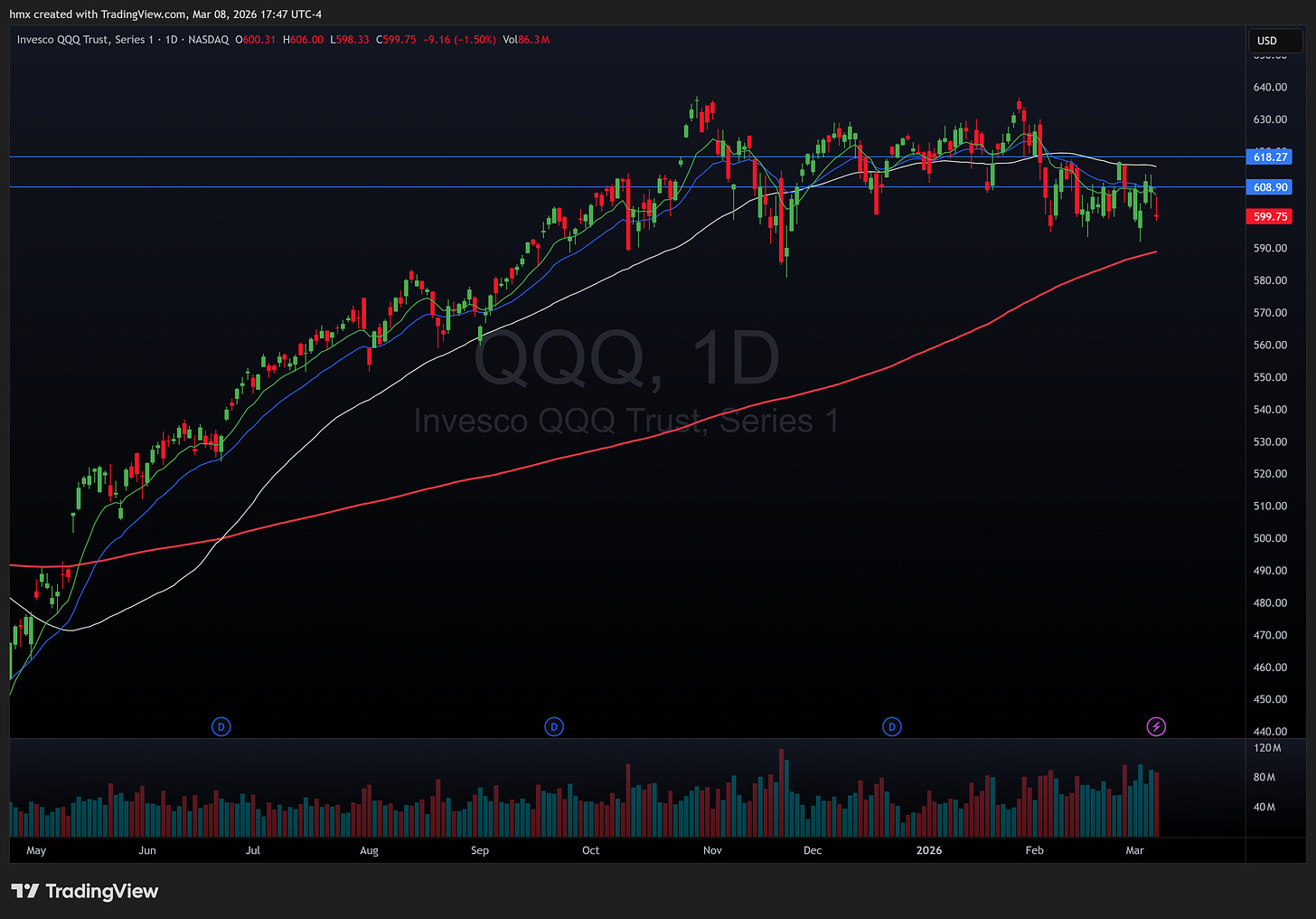 The S&P 500 SPY 0.00%↑ dropped about 1.3% on Friday alone to close at 6,740, and the breadth numbers told the real story: 59% of components were sitting at five-day new lows while only 8% made new highs. The Nasdaq QQQ 0.00%↑ fell 1.5% Friday and gave back everything from Wednesday’s bounce. The week had a choppy rhythm to it. Monday gapped down hard on the Iran news, Wednesday rallied on a brief “economic resilience” narrative, and then Thursday and Friday sold off as oil kept screaming higher and the February jobs report came in at negative 92,000 versus expectations of positive 59K.